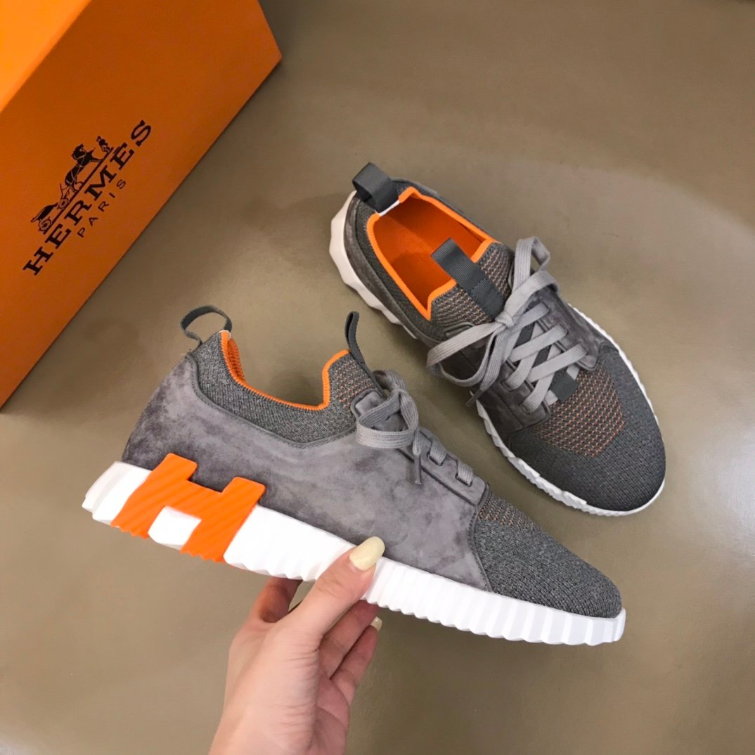 针织运动鞋,橡胶鞋底,标志性橙色边缘。浅色鞋底,打造现代运动外观。
