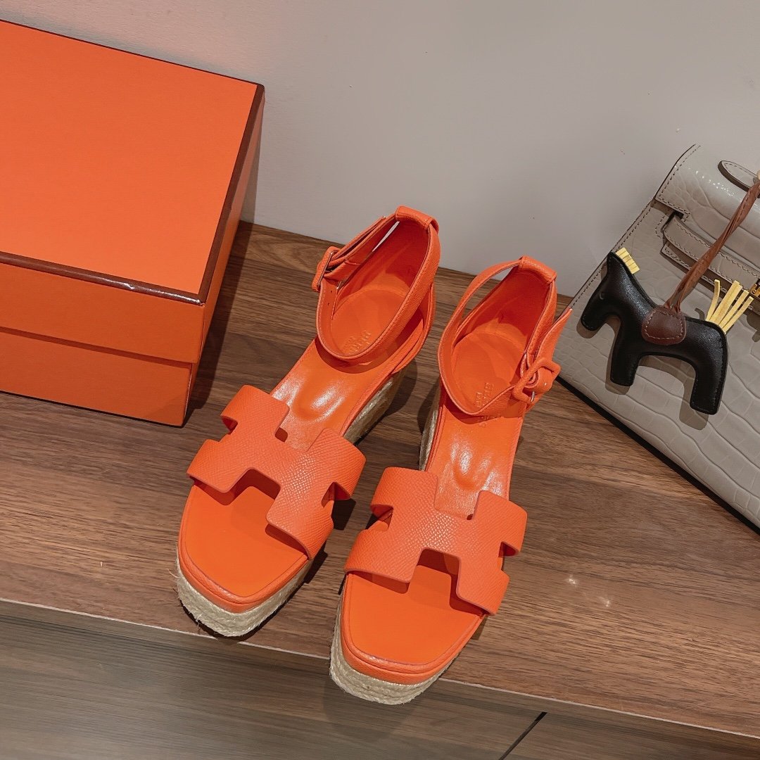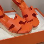 Hermes Doll 40 女式麻底鞋橙色 1.6 英寸/4 厘米