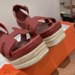 Hermes Doll 40 女式麻底鞋红色 1.6 英寸/4 厘米
