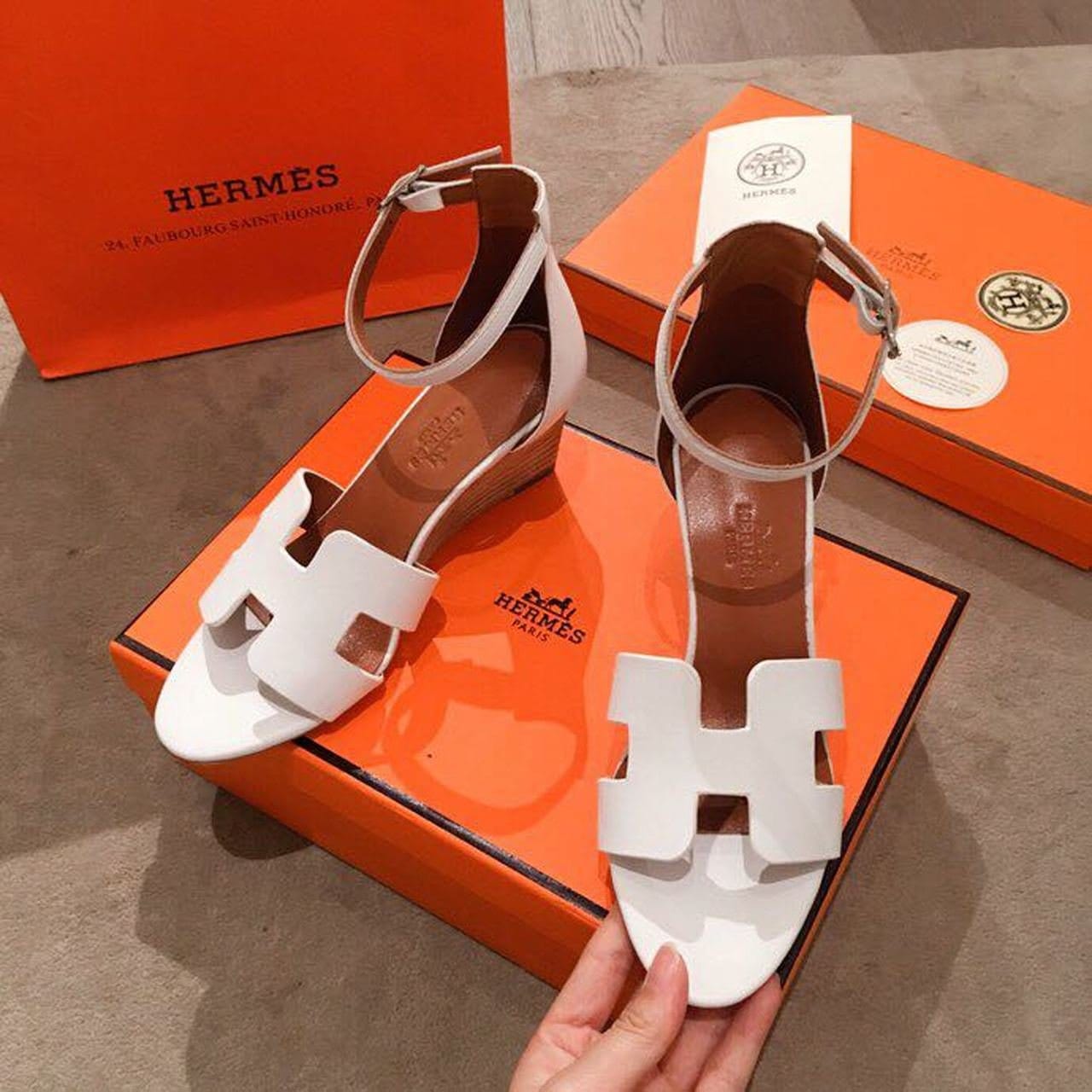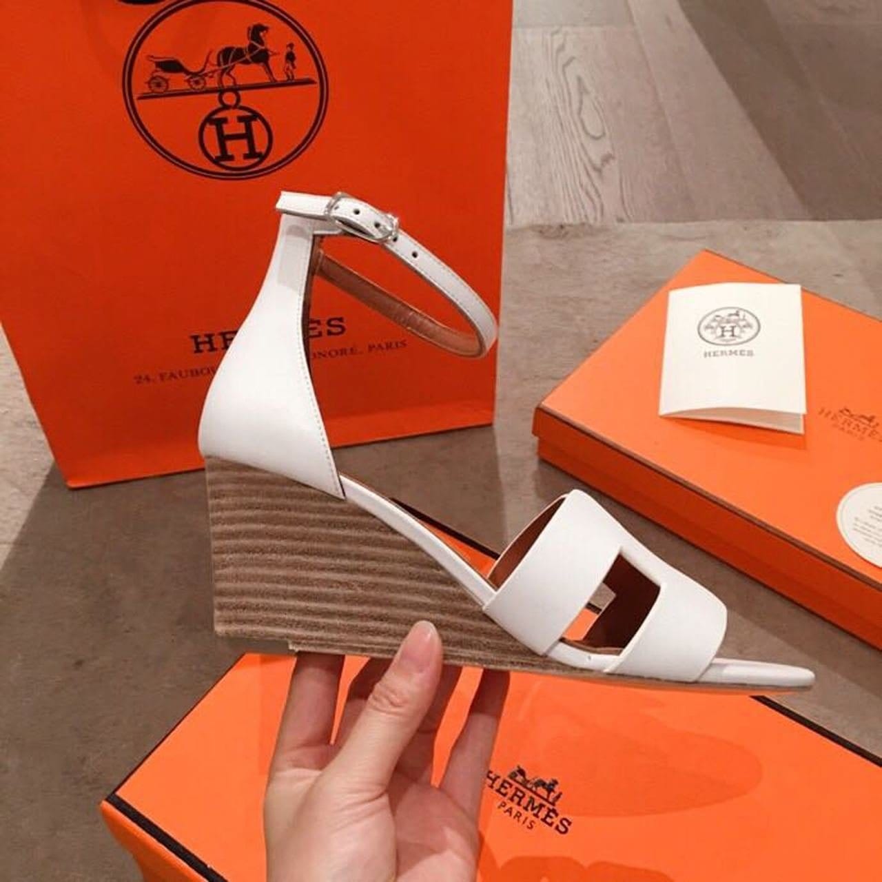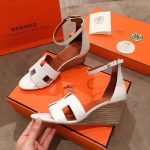 凉鞋采用标志性“H”形镂空、坡跟和细踝带。标志性爱马仕风格,这款款式是每个衣柜的必备单品。