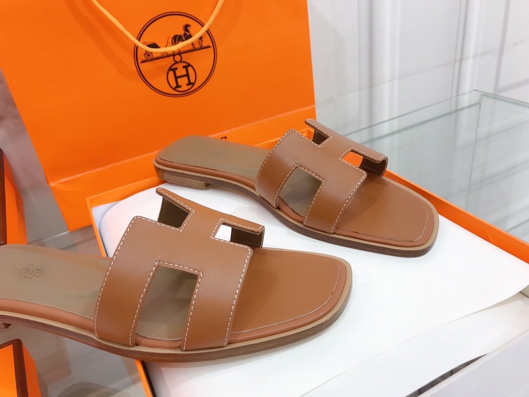 Hermes Oran 女式凉鞋棕色,女鞋 H021056Z
