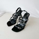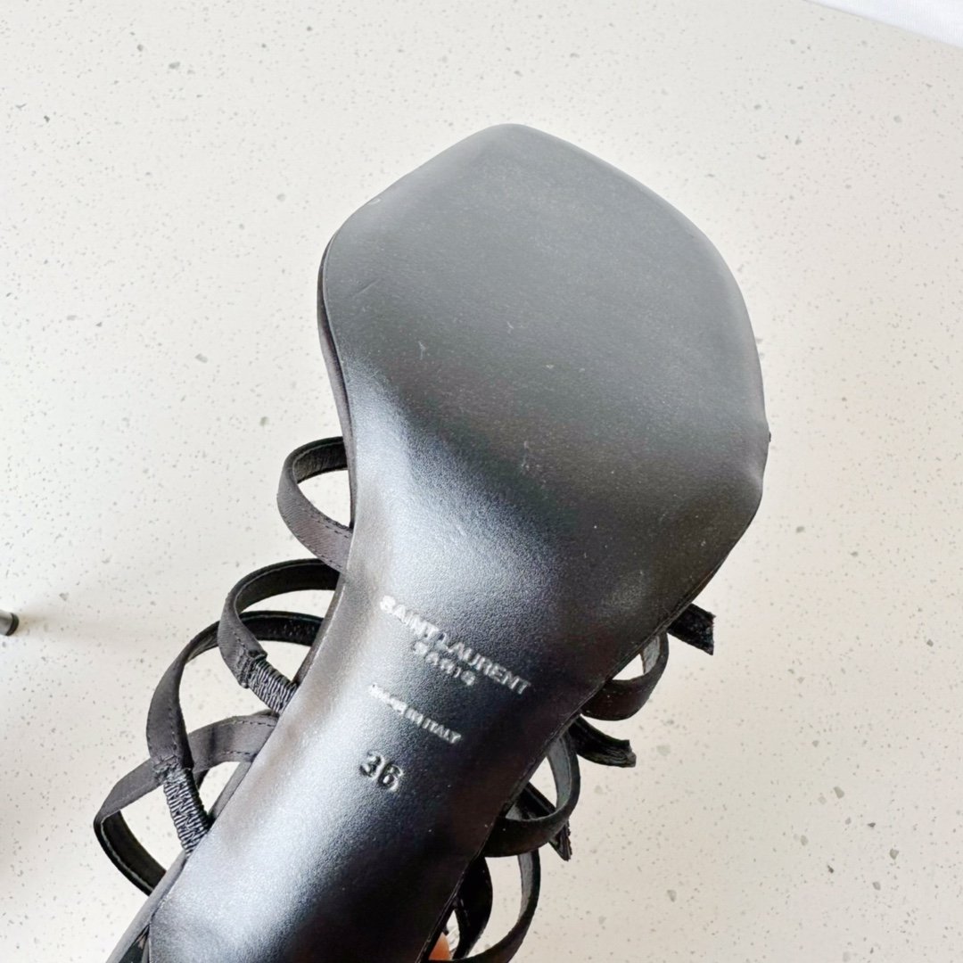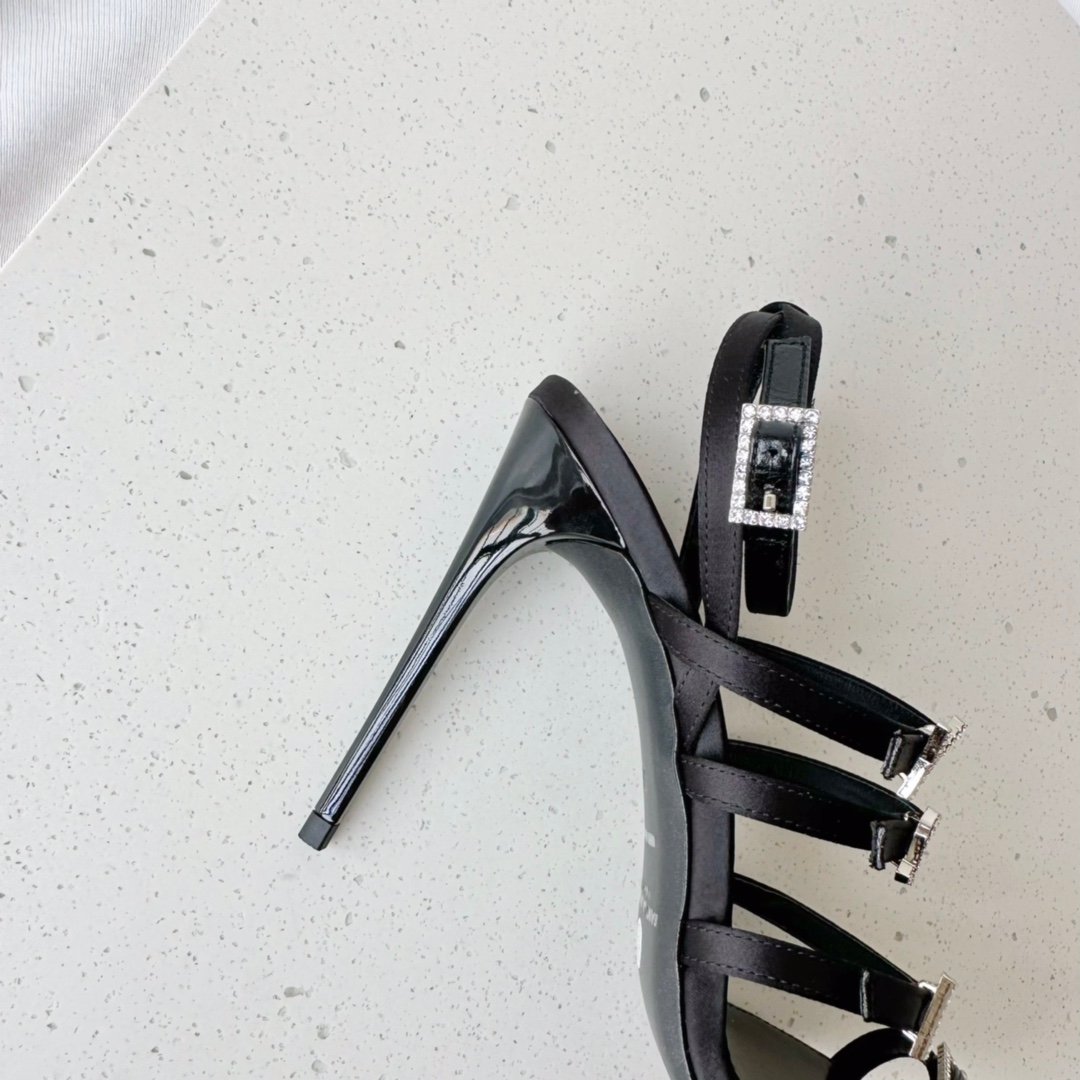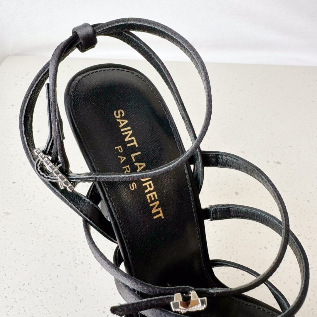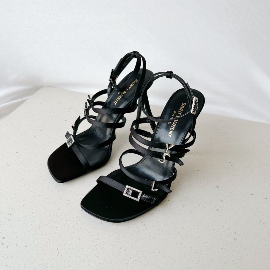 三条带子饰有莱茵石 ysl 缩写和包覆细高跟鞋跟。