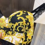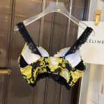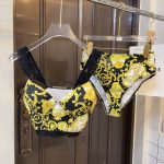 Versace Lace-Trimmed Printed Swimsuit Yellow