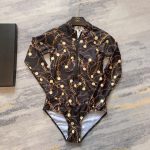 Hermes Long Sleeve One Piece Bathing Suit With Zipper Brown
