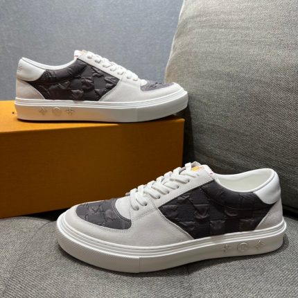 Rivoli 运动鞋是路易威登的标志性款式之一,采用粒面设计并带有超大 Damier 图案,经过重新诠释。该设计的侧面饰有 Monogram Flowers。此款配有鞋带和外底。