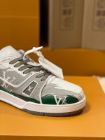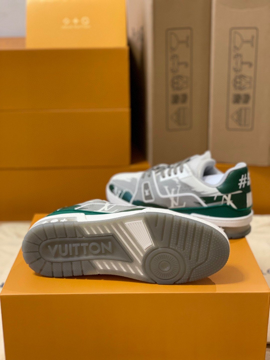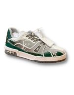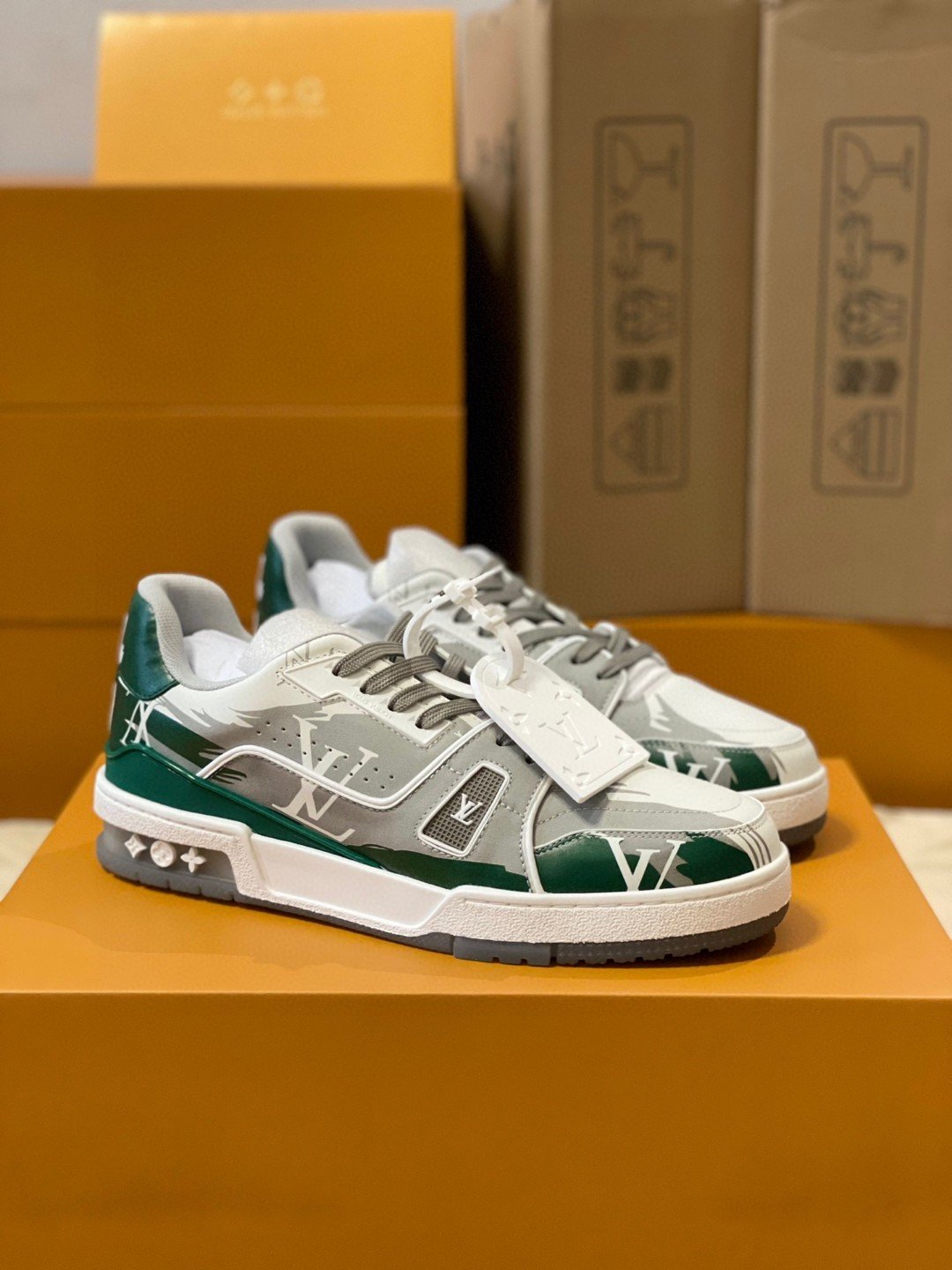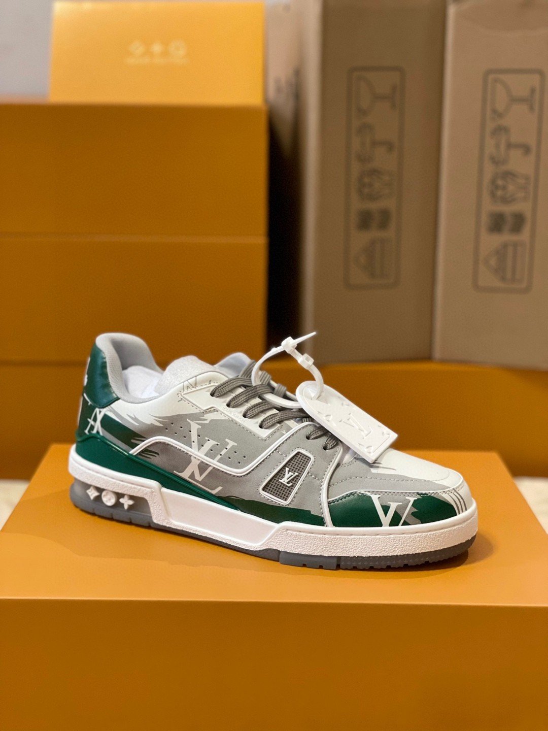 标志性的 LV Trainer 运动鞋以 Virgil Abloh 创作的印花图案重新演绎。图案鞋面搭配饰有 Monogram Flowers 的双色橡胶外底。该鞋款的鞋舌和侧面印有 LV 首字母,后背印有 #54 签名,指的是 1854 年,即路易威登创立的年份。