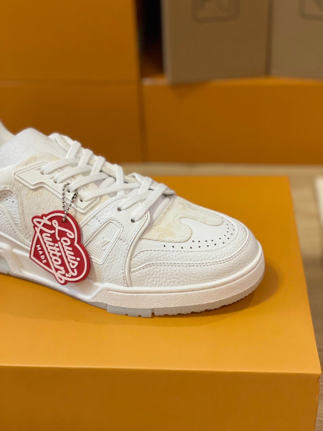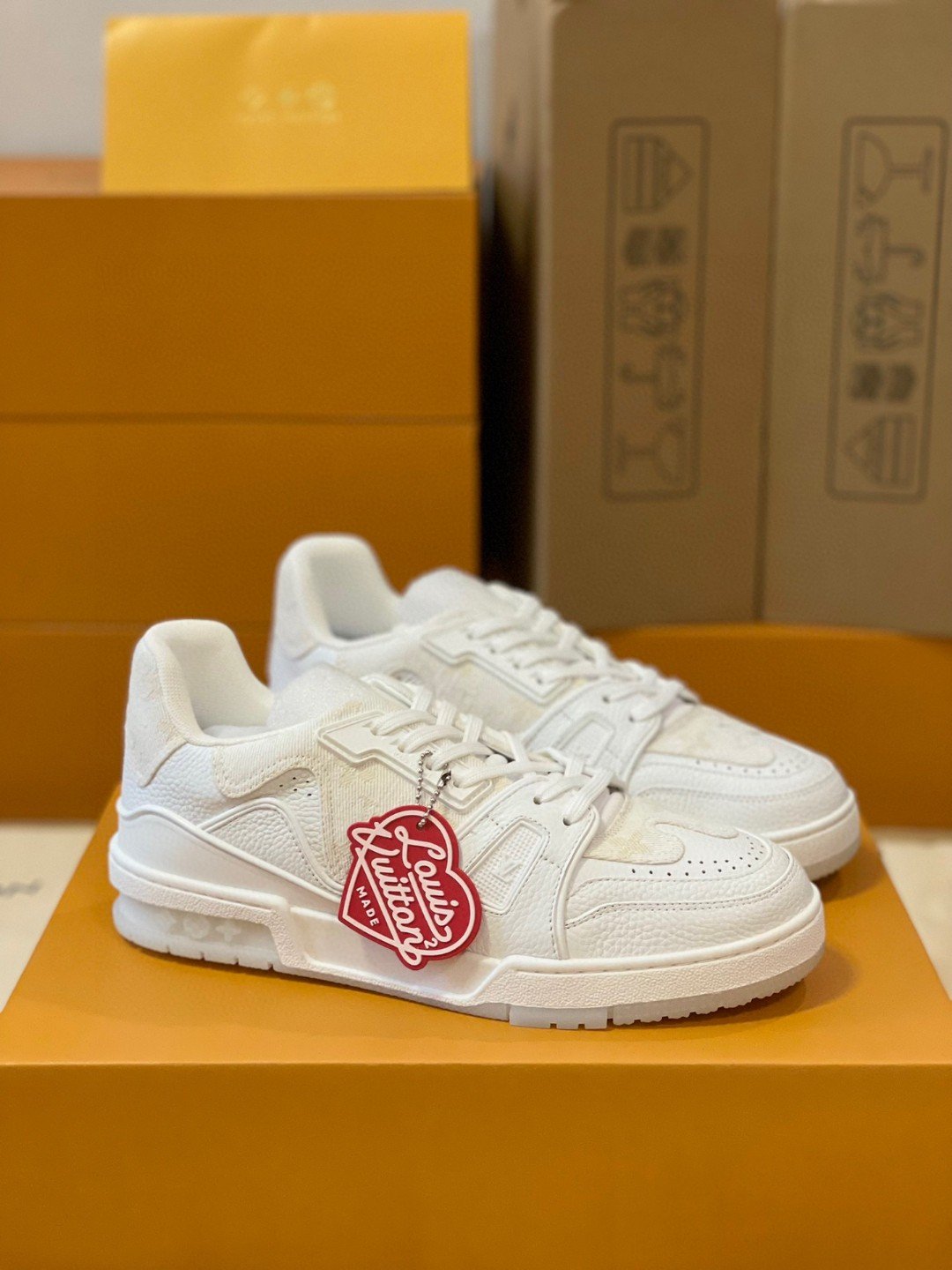 日本街头服饰传奇人物 Nigo 与 Louis Vuitton 艺术总监 Virgil Abloh 的第二次合作,重新设计了标志性的 LV Trainer 运动鞋。 Monogram 牛仔布鞋面辅以饰边,并饰有红色心形 Louis Vuitton2 橡胶贴片。 Nigo 将英国花花公子与日本街头文化本能地融合在一起,使他成为美术与时尚十字路口具有独特影响力的人物。