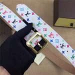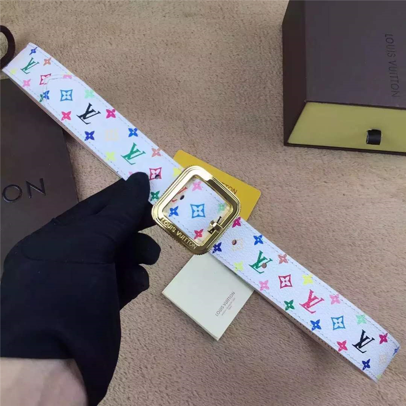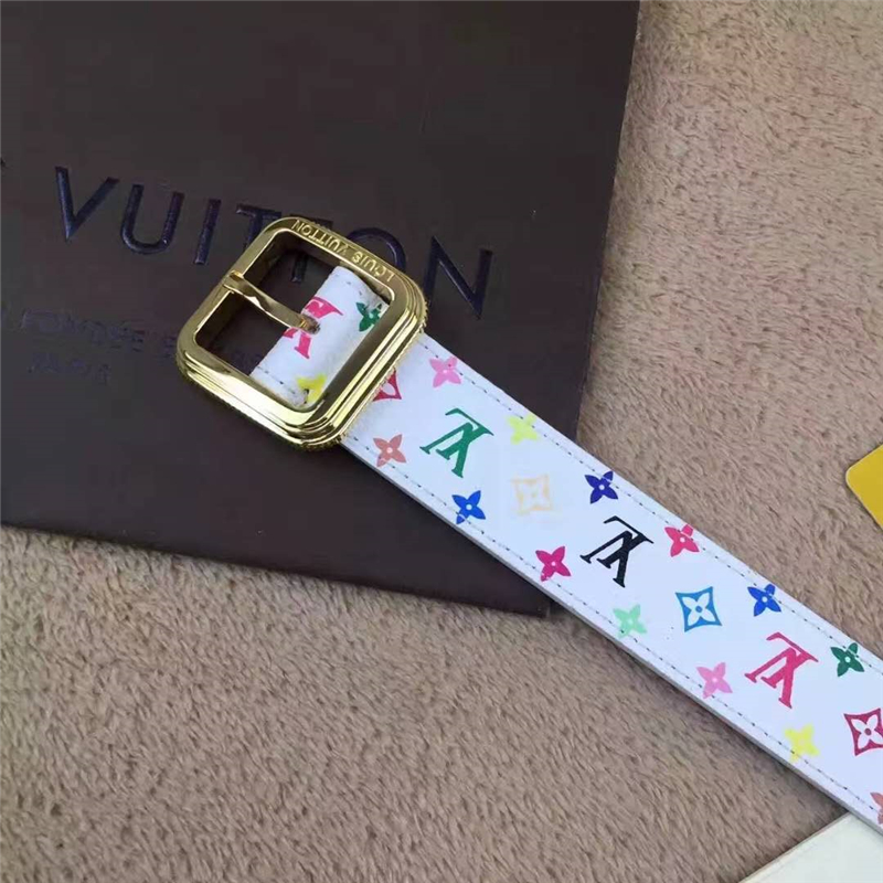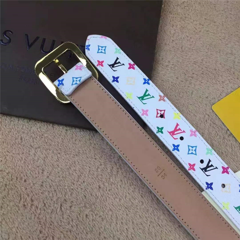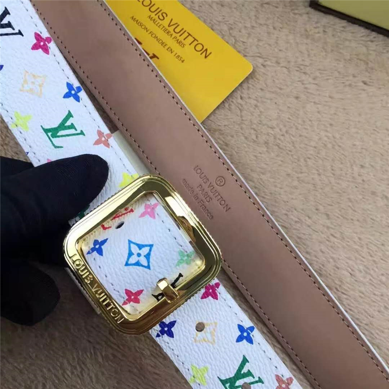 - LV 路易威登 专柜新品 彩色老花 牛皮皮带 金属针扣 女士皮带 白色