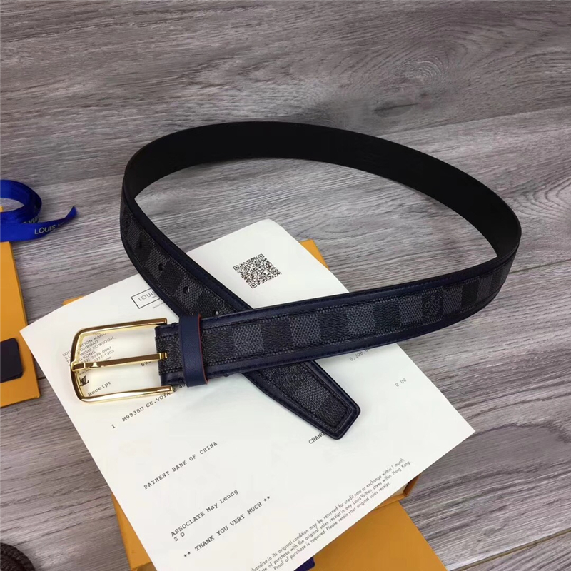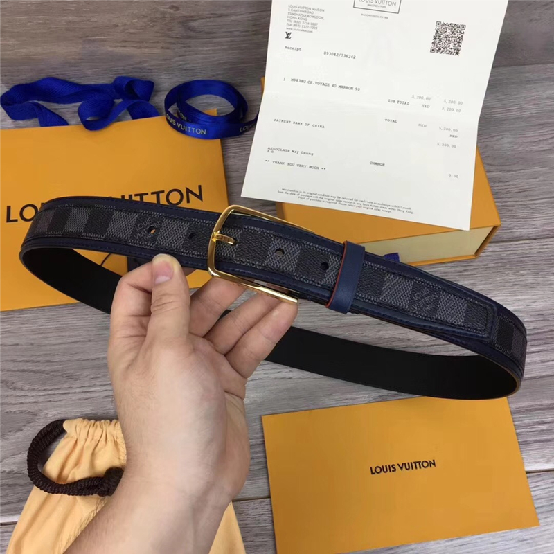 - M0041 LOUIS VUITTON 专柜新品 LV皮帶 牛皮皮带 金属针扣 金色