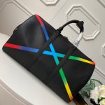 - 详细介绍:Keepall Bandoulière 50 旅行袋以雾黑色 Taïga 皮革呈现橡胶一般的柔软触感,彩虹色 X 图案传递男装艺术总监 Virgil Abloh 倡导的主题风尚。路易威登经典 Keepall 50 系列采用机舱行李尺寸,可容纳一周衣物。