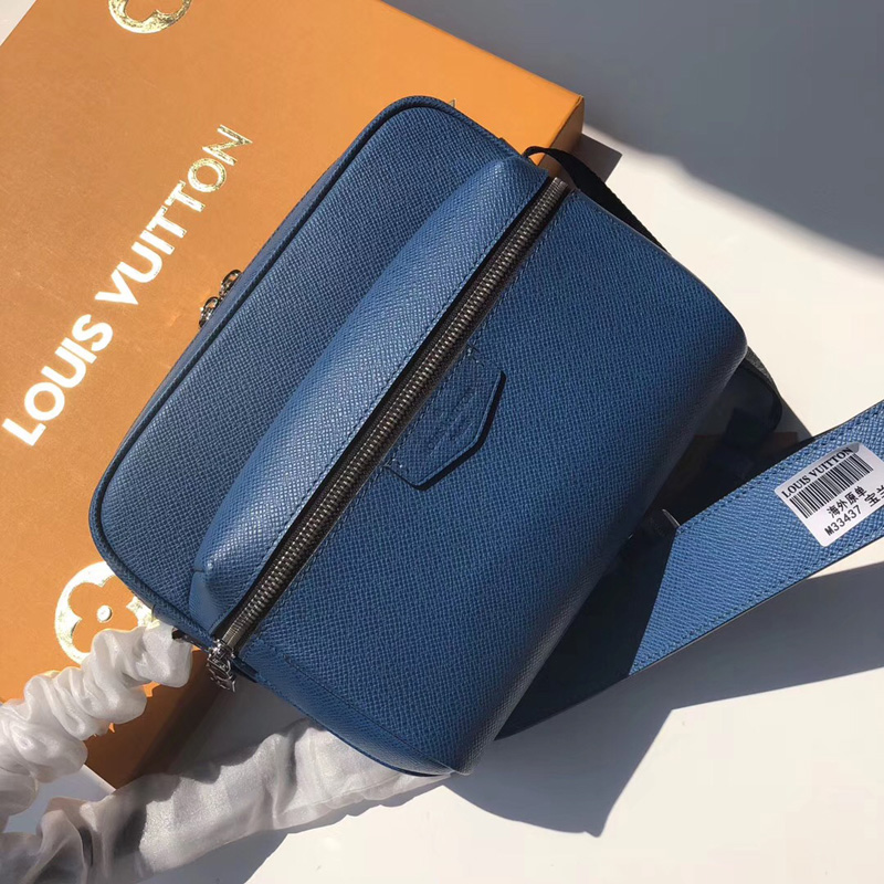 - M33437 LV Outdoor 小号邮差包 Taiga皮革男包 LV男士邮差包 宝蓝