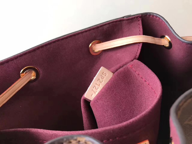 - 结构:- Monogram涂层帆布面料- 天然牛皮饰边- 超细纤维粘合内衬- 闪亮金色金属饰件- 可调节肩带 - 顶部开口采用抽绳调节,配搭扣。- 拉链外袋- 内置贴袋