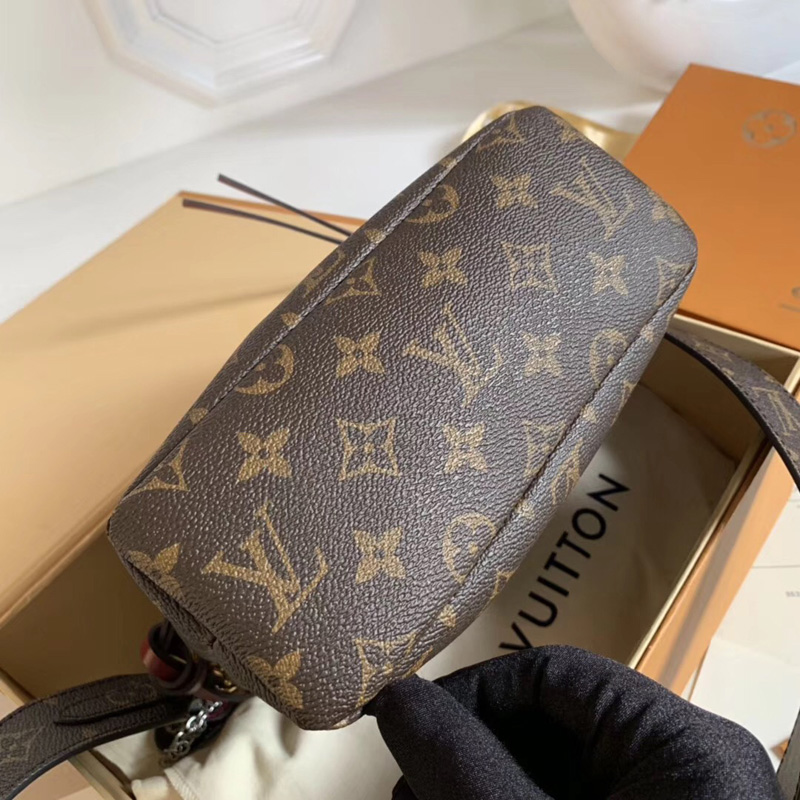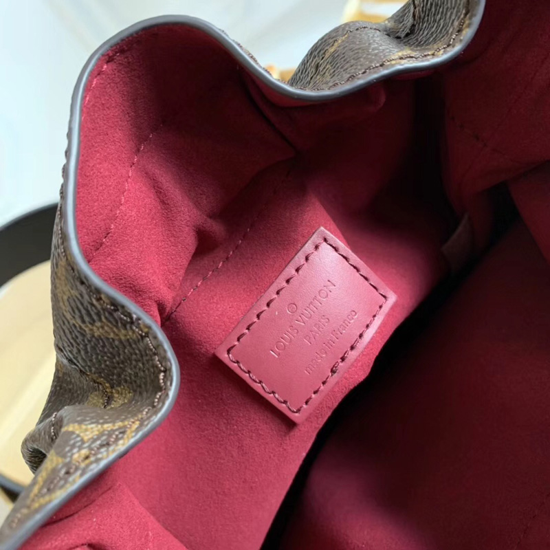 - 结构:- Monogram涂层帆布面料- 天然牛皮饰边- 超细纤维内衬-抽带开口-可拆卸肩带