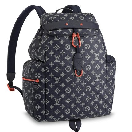 - 结构:15.7 x 11.8 x 7.8 英寸Monogram Eclipse涂层帆布织物内衬牛皮皮革粉色与海军蓝金属饰件一对可调节背带顶部手柄2个包内贴袋内设iPad口袋拉链开合正面配有拉链隔层