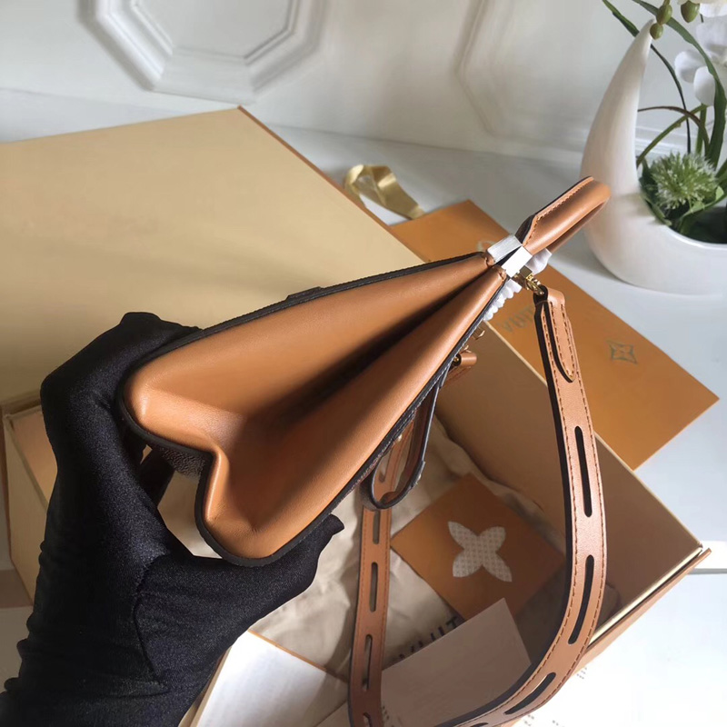 - 结构:- 长 9.8 x 高 6.6 x 宽 3.1 英寸 – 视幻花纹 – Monogram涂层帆布外观 – 小牛皮 – 小牛皮饰边 – 超细纤维内衬 – 拉丝金银金属饰件 – 皮质榫接肩带 – 皮质手柄 – 金属扣合 – 背面双层内贴袋