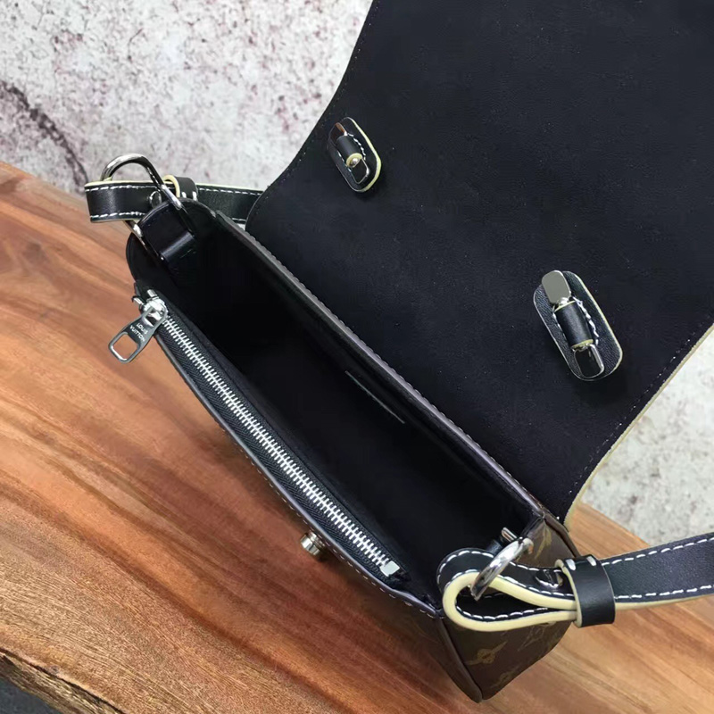 - 结构:- Monogram涂层帆布与小牛皮外层- 超细纤维内衬- 小牛皮饰边- 银色金属饰件- 挂锁造型的开合设计- 顶部配有可伸缩Toron手柄- 拉链内袋- 内部贴袋- 可拆卸的皮革肩带