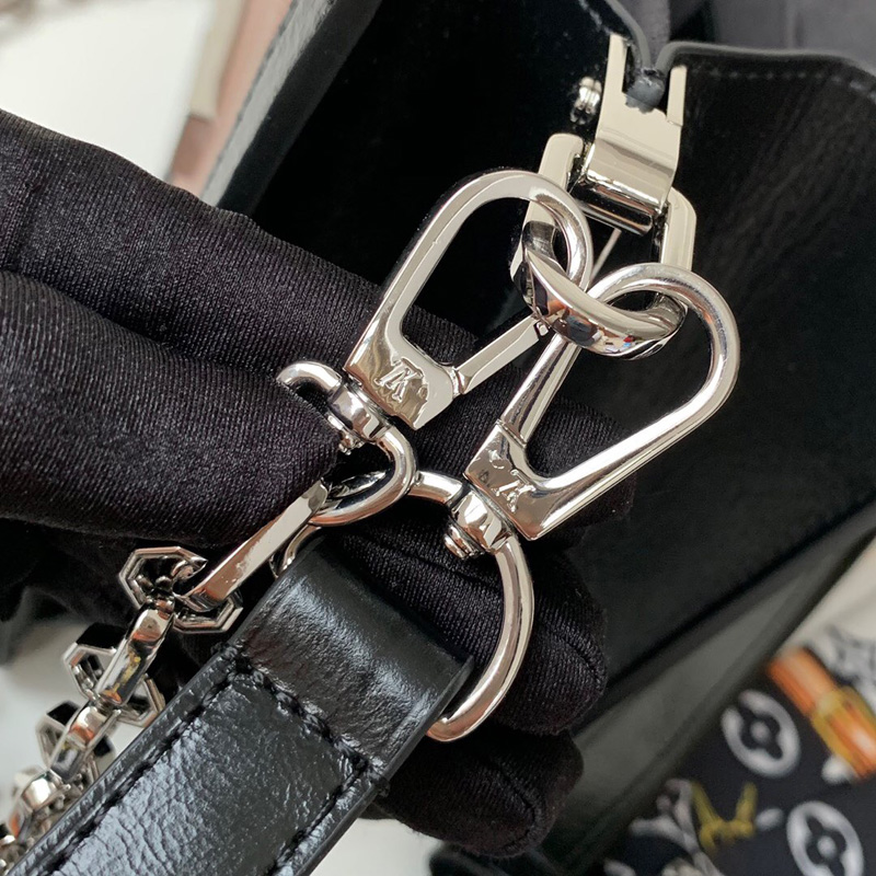 - 结构:Monogram 和 Monogram Reverse 涂层帆布 小牛皮饰边 超细纤维内衬 可拆卸、可调节皮质肩带,可肩背或斜挎 可拆卸链条肩背带 前磁扣 2 个内隔层,配有中央拉链