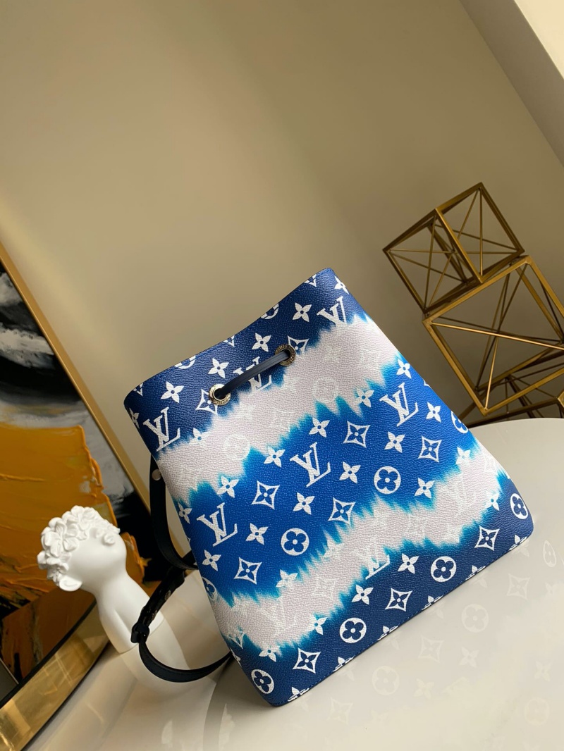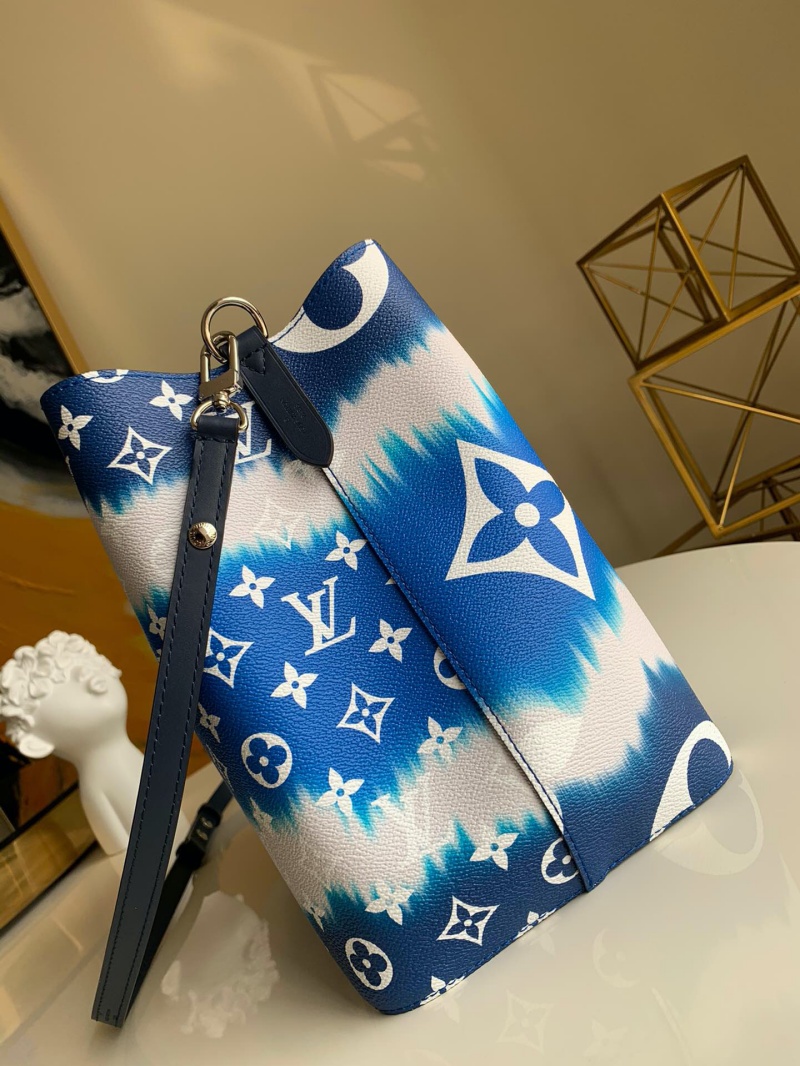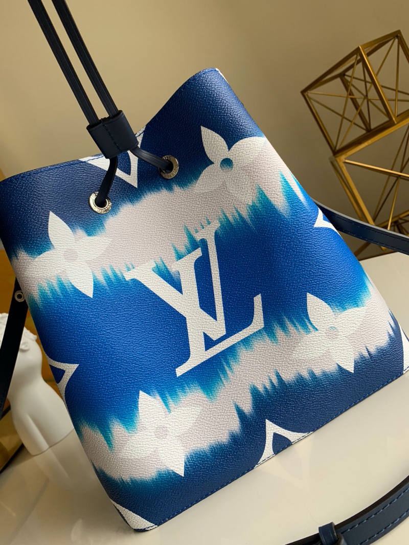- 详细介绍:LV Escale 系列 NéoNoé 水桶包取材扎染 Monogram 帆布,其别致图案源自日本绞染工艺中将面料打结后染色的传统手法,在 2020 春夏手袋、鞋履和成衣系列均有呈现。可拆卸肩带提供肩背或斜挎选择。