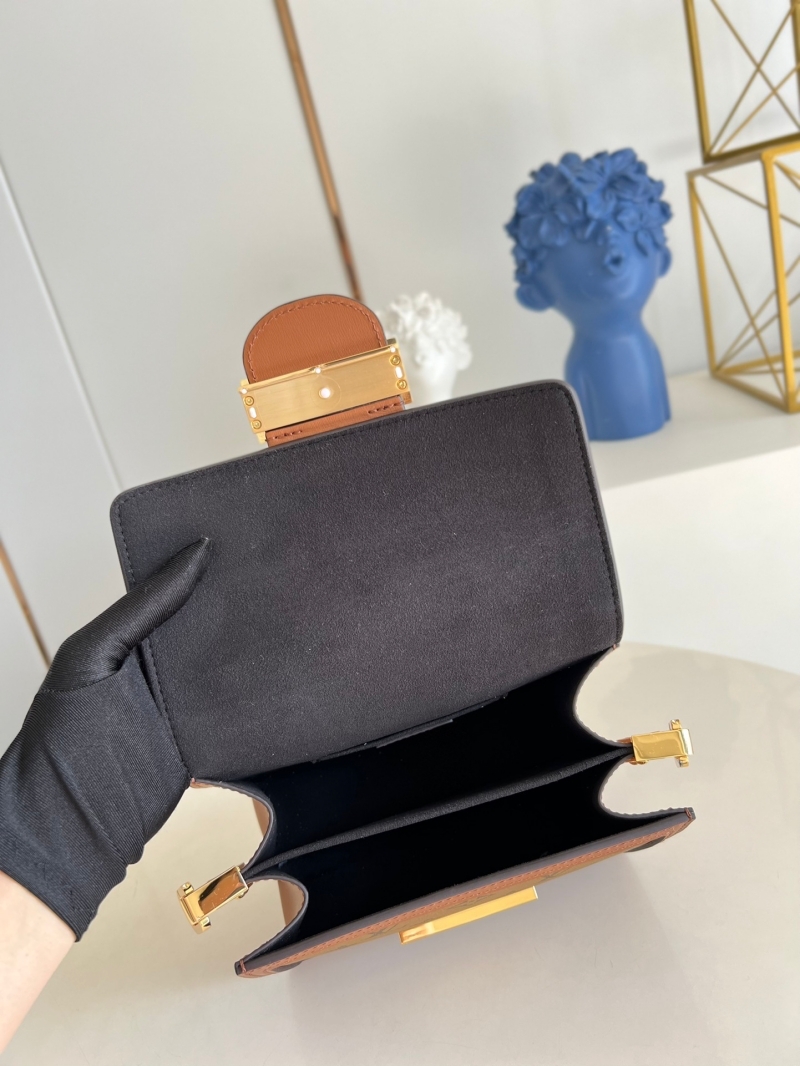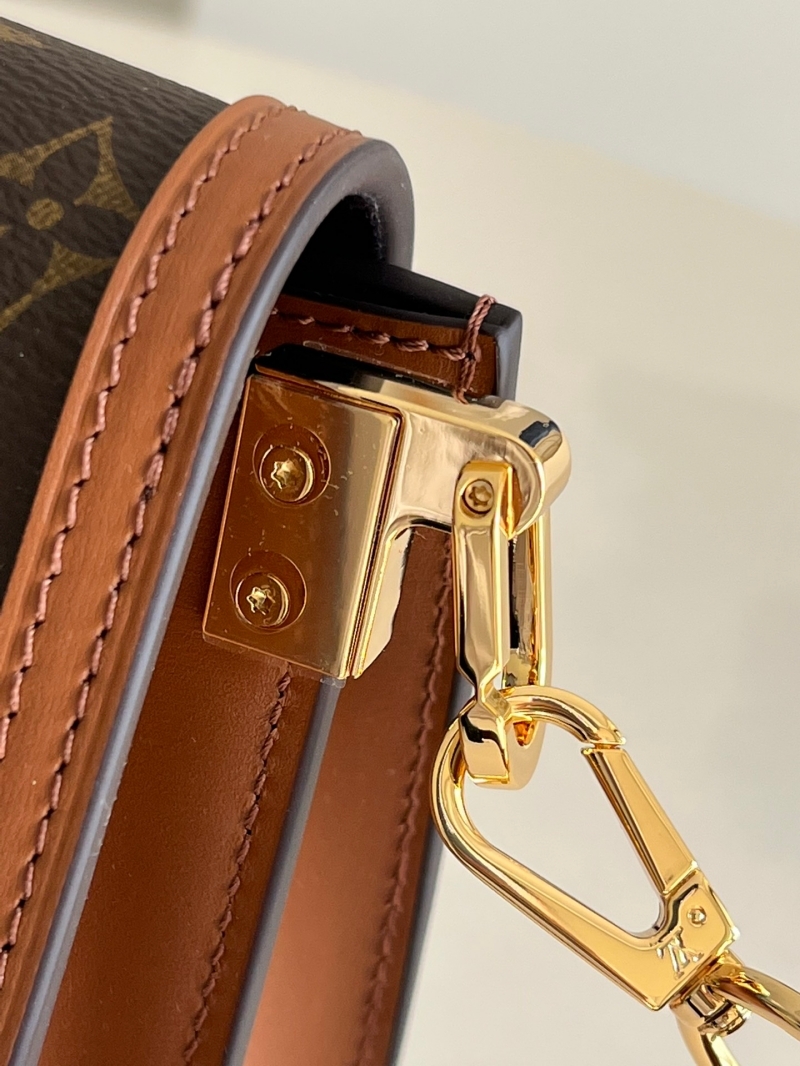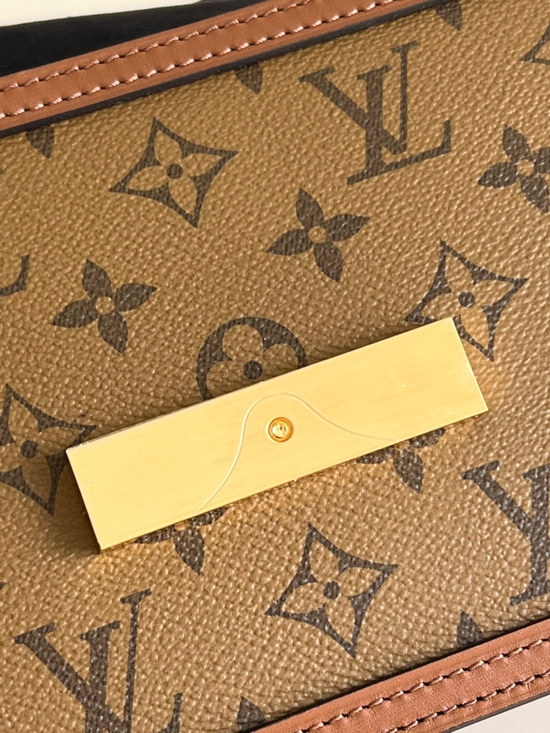 - 结构:Monogram 和 Monogram Reverse 涂层帆布 牛皮革饰边 微纤维内衬 金属件 前磁扣 2 个内隔层 后侧内贴袋 肩带:可拆卸,可调节 包带半长:26.0 厘米 包带半长可调至:49.0 厘米