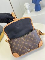 - 结构:Monogram 涂层帆布 织物内衬 做旧牛皮革饰边 金属件 翻盖配有磁扣 拉链内袋 外贴袋 肩带:可拆卸,不可调节 包带半长:24.0 厘米 包带半长可调至:53.0 厘米 手柄:单手柄,可拆卸