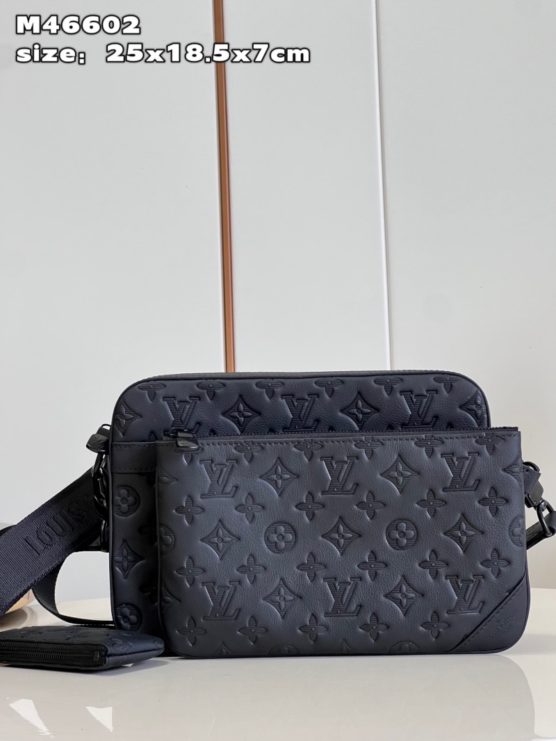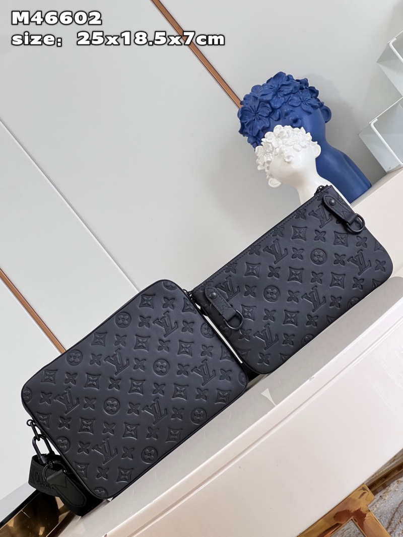 - M46602 LV TRIO 邮差包 压纹牛皮男士三合一斜挎包 黑色