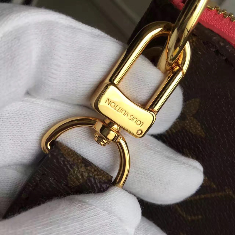 - 结构:- Monogram 涂层帆布材质- 柔软的小牛皮饰边,泡塑衬背- 带衬垫的顶部皮革手柄- 一对可调节肩带- 锦纶内衬- 金色的金属配件- 拉链头饰有刻纹- 包外侧配有拉链前袋- 扁平内袋