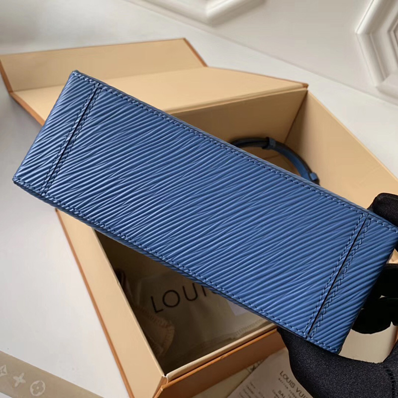 - 结构:牛仔蓝 Epi粒纹牛皮 磨面牛皮饰边 超细纤维内衬 金色金属饰件 顶部配有Toron手柄,适合手提或手挽 可脱卸、可调节肩带,方便肩背或斜挎 经典磁吸挂锁 内设贴袋