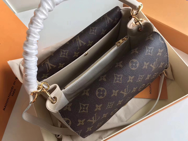 M54438 LV DOUBLE V 手袋 LV女包 翻盖式拼色老花单肩手提包 奶白色