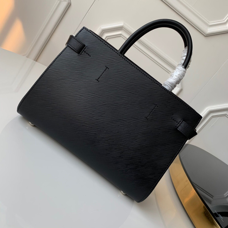 - 结构:- 11.8 x 8.6 x 5.1 英寸 – Epi粒纹牛皮与Cuir Ecume粒纹牛皮 – 超细纤维内衬 – Cuir Ecume粒纹牛皮饰边 – 闪耀的银色金属饰件 – 1对Toron手柄 – 1个可脱卸包带 – 正面配有1只贴袋/借鉴标志性银色LV扭锁设计 – 两侧各置一条可调节包带,配有摁扣 – 2个大号隔层,正中配有1只拉链口袋 – 1个钥匙罩 – 包底有四枚保护钉