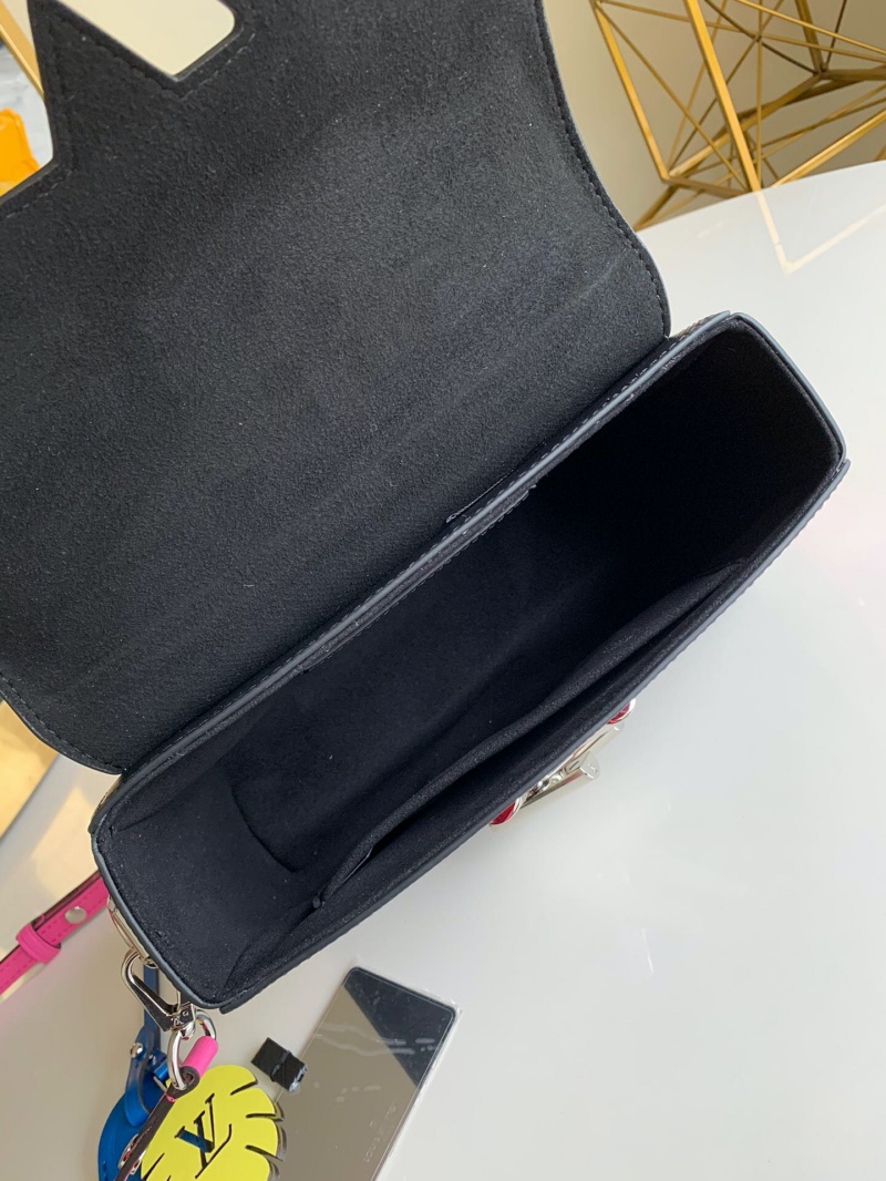 - 结构:Epi 粒面皮革 超细纤维内衬 金属件 可拆卸、可调节皮革肩带,可肩背或斜挎 有机玻璃手柄,可手提 变形版 LV Twist 扭锁 内贴袋,配有可拆卸镜子 大号内袋