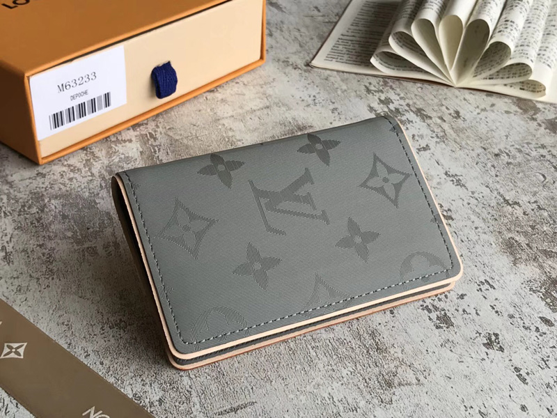 • M63233 LV 口袋钱夹 LV Monogram Titanium灰色帆布卡夹 LV护照夹