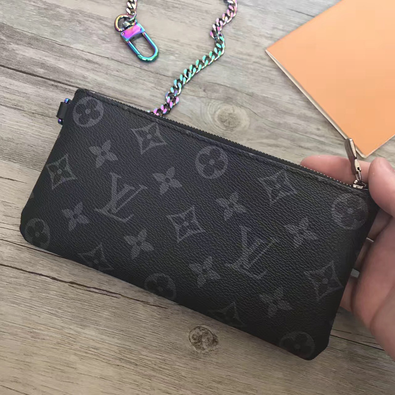 - 结构:- 外层为Monogram Eclipse涂层帆布- 织物内衬- 银色与虹彩金属饰件- 拉链开合- 可脱卸的金属链条