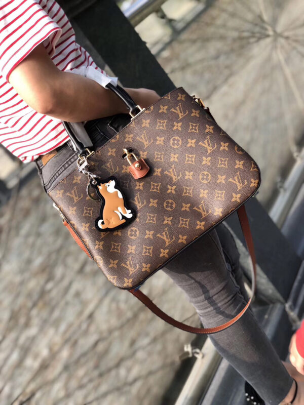 • 结构:玫红色 Monogram 涂层帆布和小牛皮 小牛皮和超细纤维内衬 金色金属件 可拆卸金属链条 磁扣开合 大号风琴隔层 拉链内袋 内贴袋 小号前贴袋 6 个卡片夹层