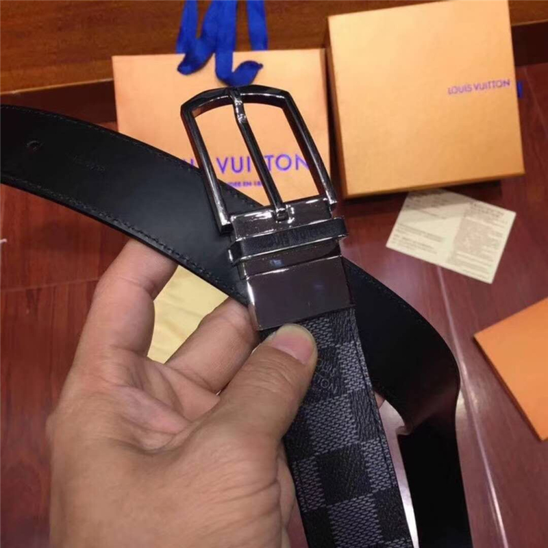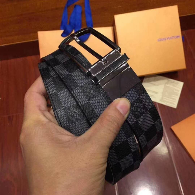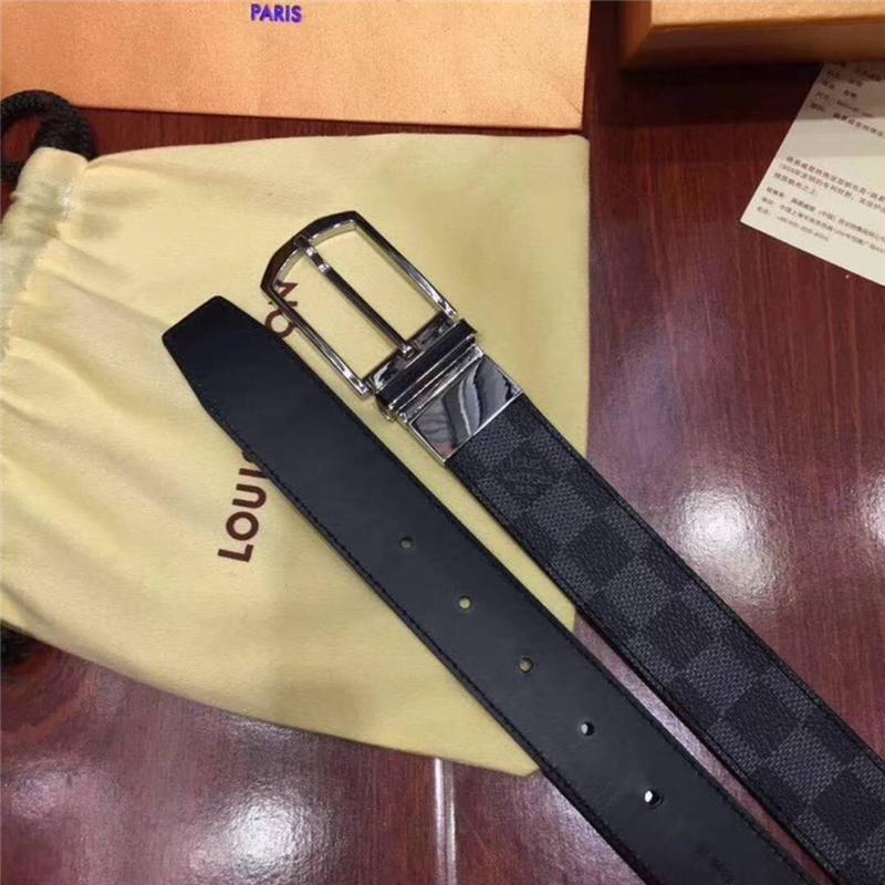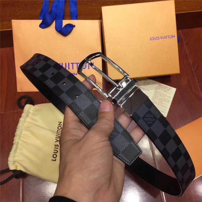 - M9074Q LV腰带 Damier帆布面 SLENDER 双面可用 男士腰带 黑棋盘格银扣