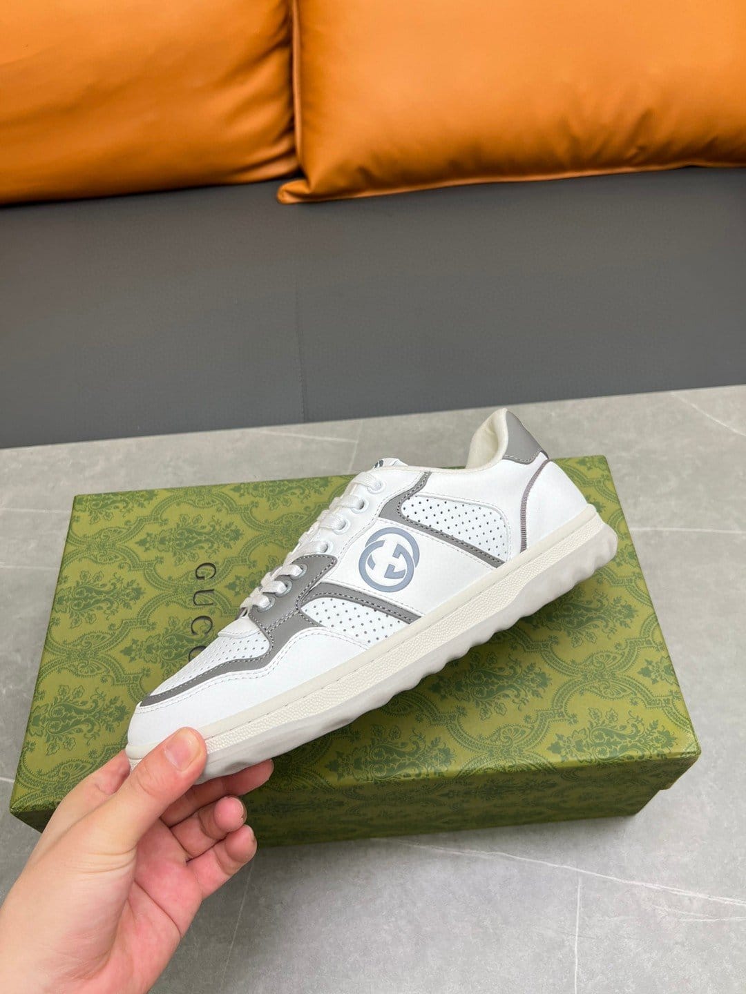 谨慎的互锁 G 诉说着贯穿整个系列的微妙叙事。在 的衬托下,图案在这款复古风格的运动鞋设计中凸显了 House 标志