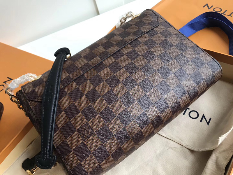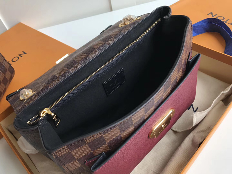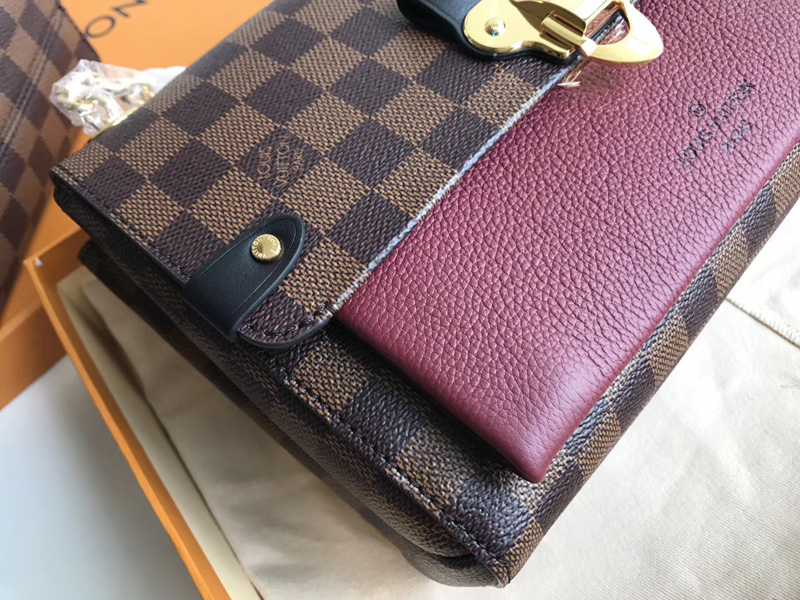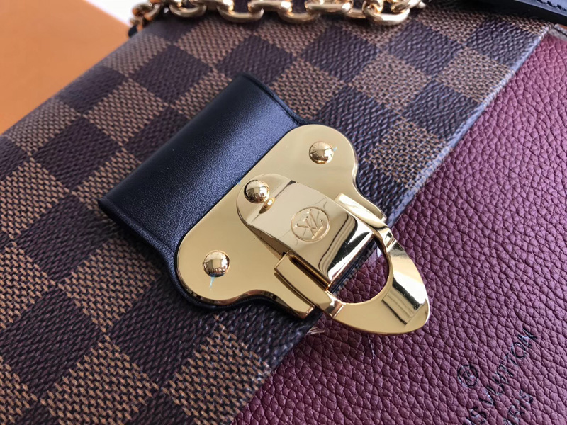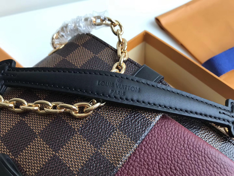 - N40109 LV VAVIN 小号手袋 Damier Ebene咖啡格帆布女包 LV链条包 酒红