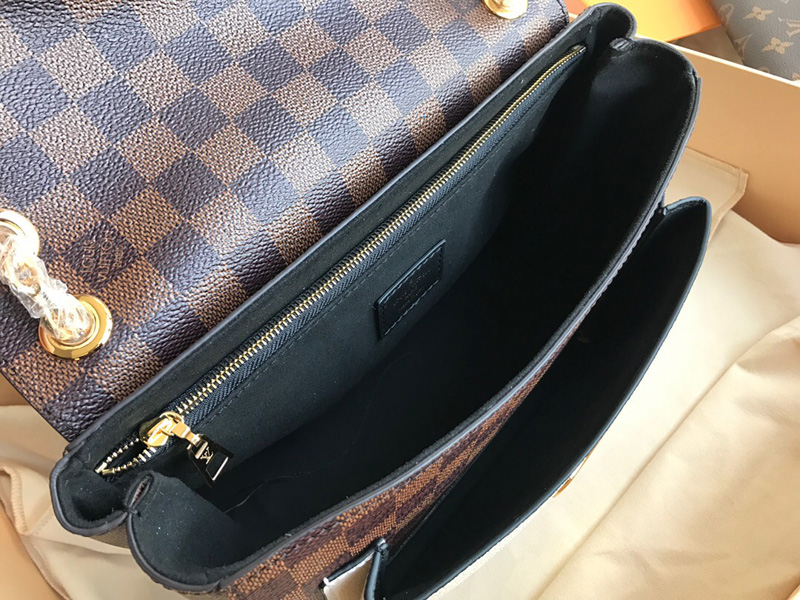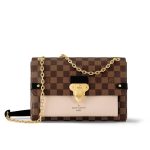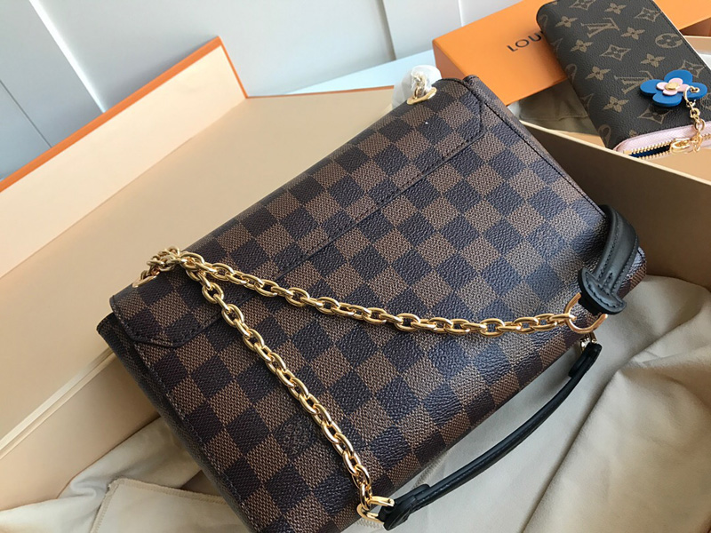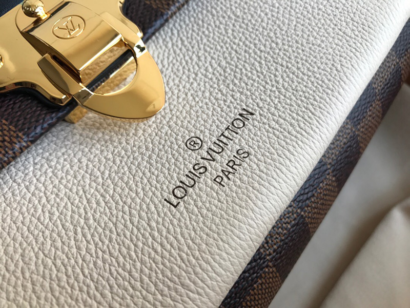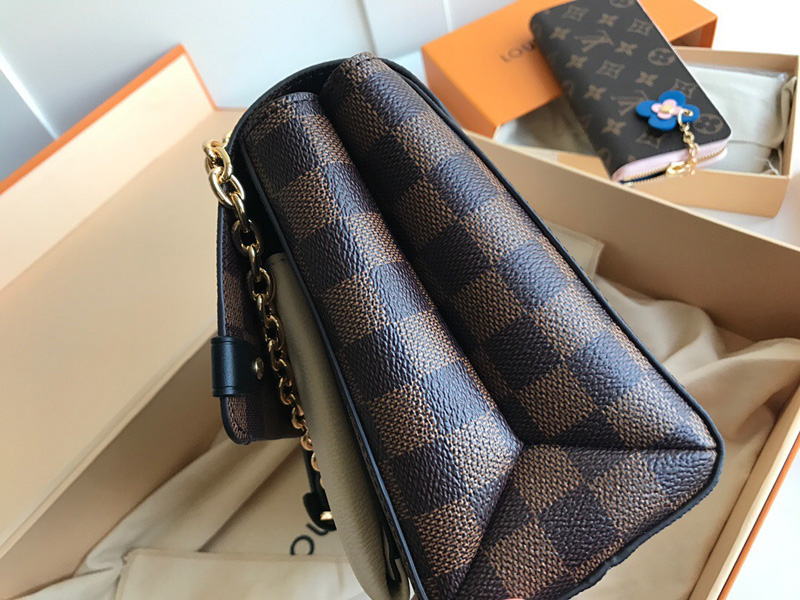 - N40113 LV VAVIN 小号手袋 Damier Ebene咖啡格帆布女包 LV链条包 奶白