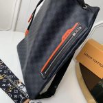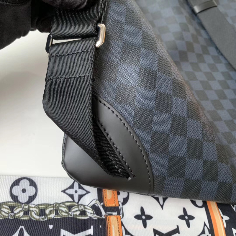 - 结构:Damier Cobalt Race 涂层帆布 牛皮饰边 织物内衬 银色金属件 广口 可调节肩带 iPad 内袋 内侧双贴袋 拉链外袋 充裕容量 免熨烫内衬 外钩扣