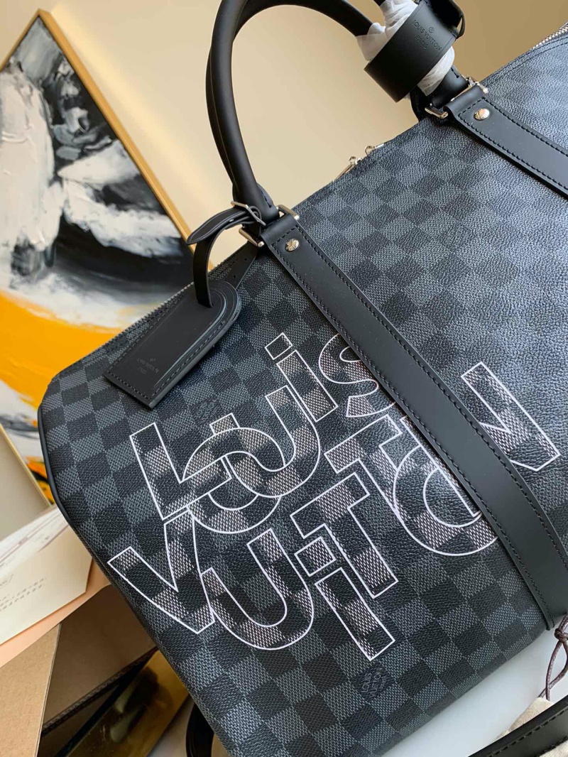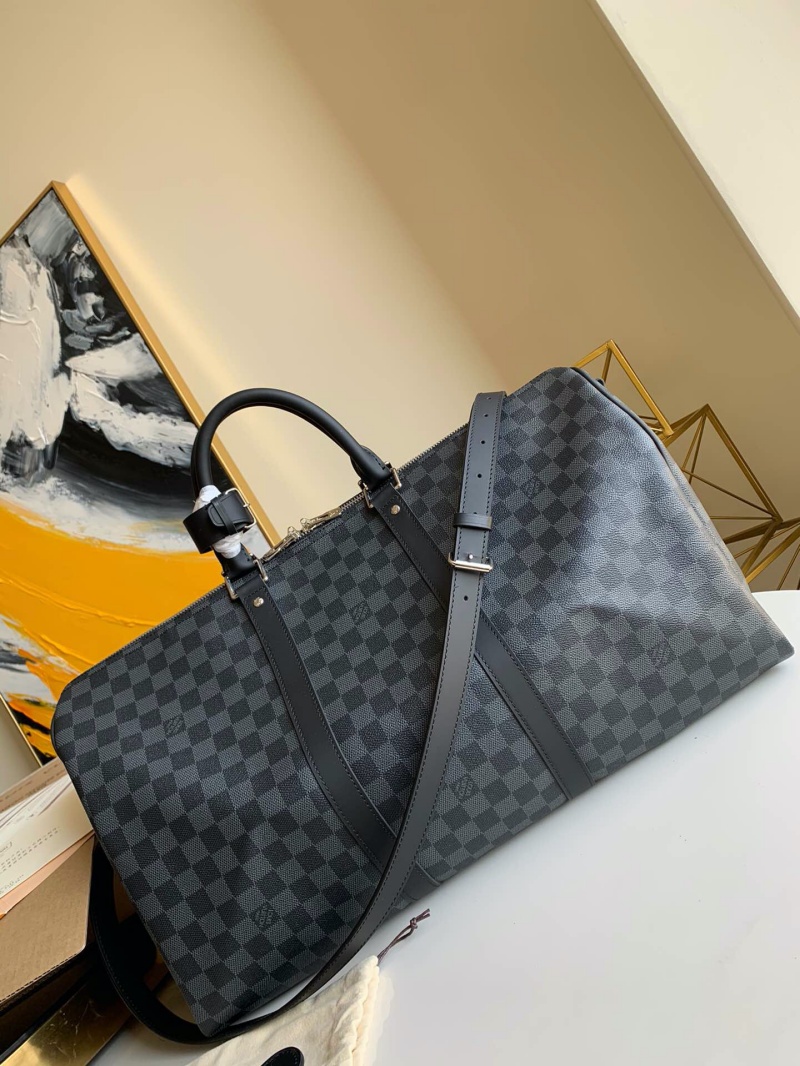 N40262 LV Keepall 50 旅行袋 Damier Graphite 帆布旅行袋 灰色印花