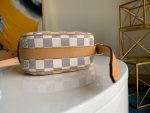 • 结构:Damier Azur 涂层帆布 天然牛皮饰边 超细纤维内衬 金属件 可调节皮革肩带 曲面搭扣 双拉链开合,配有皮革拉链头 挂锁 内贴袋