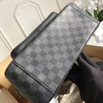 - 结构:- 石墨色Damier涂层帆布材质- 天然牛皮饰边- 织物内衬- 银色金属配件- 顶部手柄- 可调节编织肩带- 内置iPad口袋- 扁平双内袋