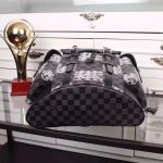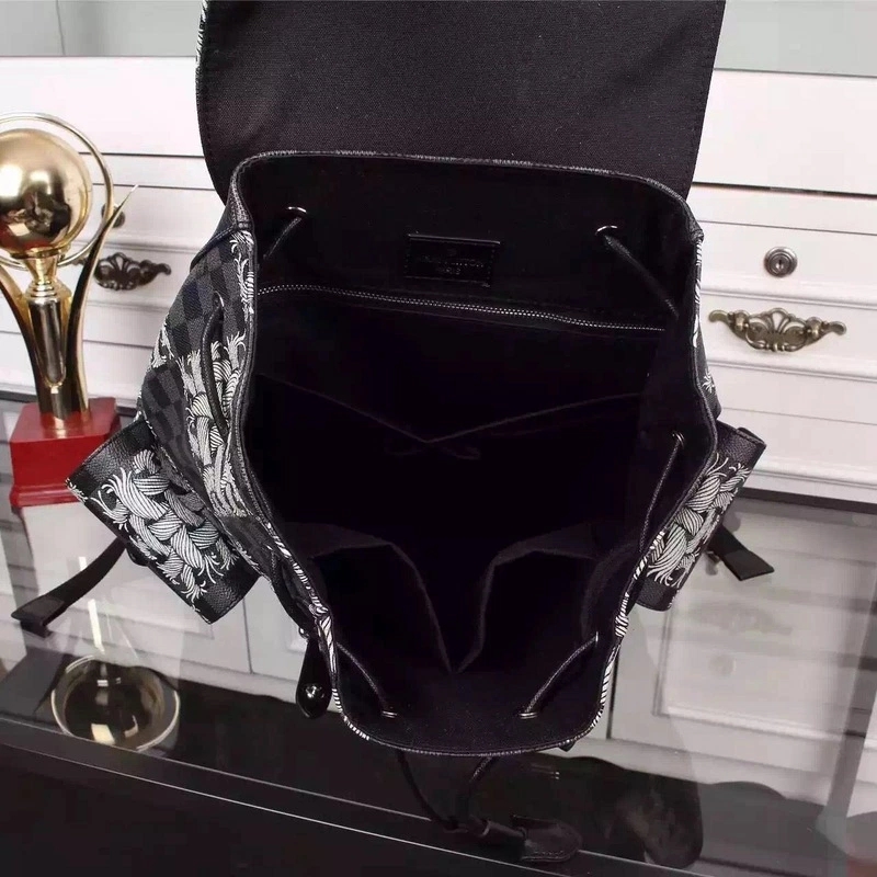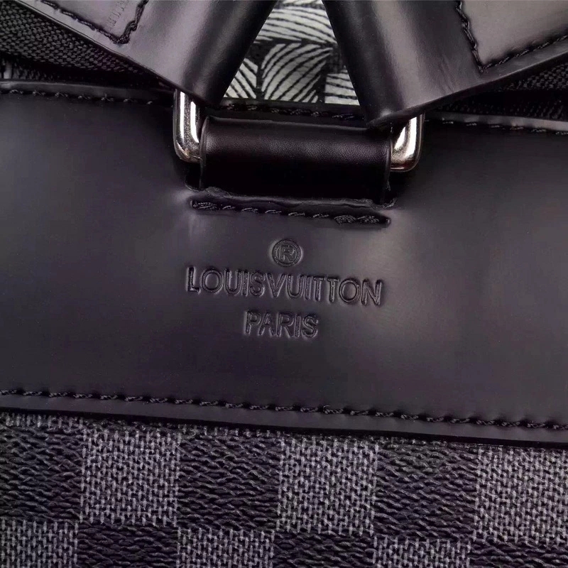 - 结构:- Damier Graphite格纹涂层帆布- 织物内衬- 天然牛皮饰边- 银色金属配件- 顶部手柄- 可调节肩带- 垂盖开合- 摁扣与抽绳开合- 2个侧袋- 内置iPad口袋- 拉链内袋- 2个扁平内袋