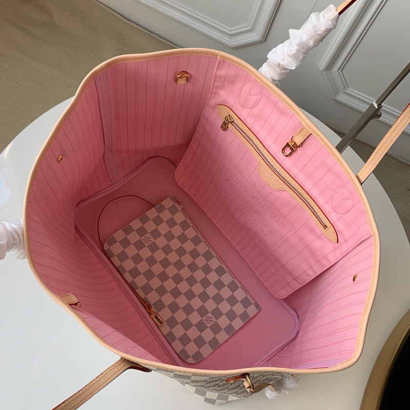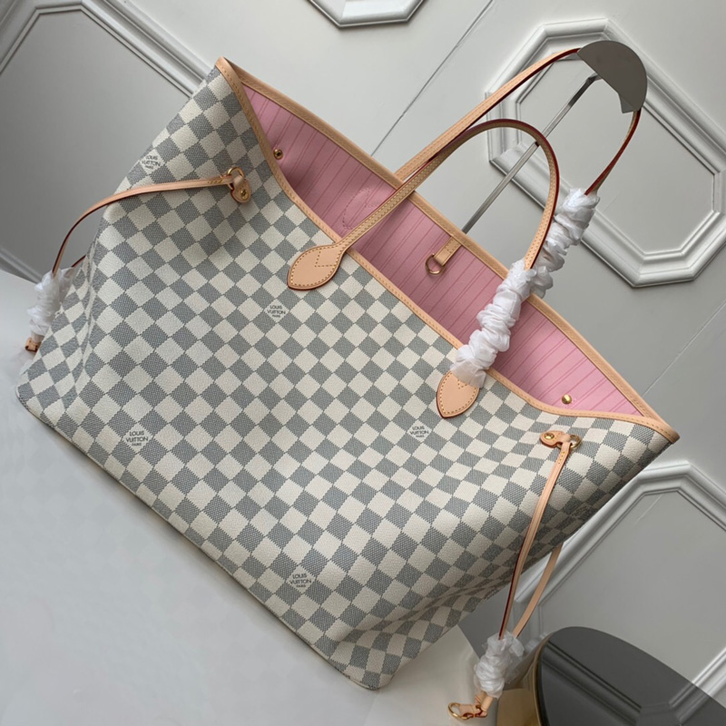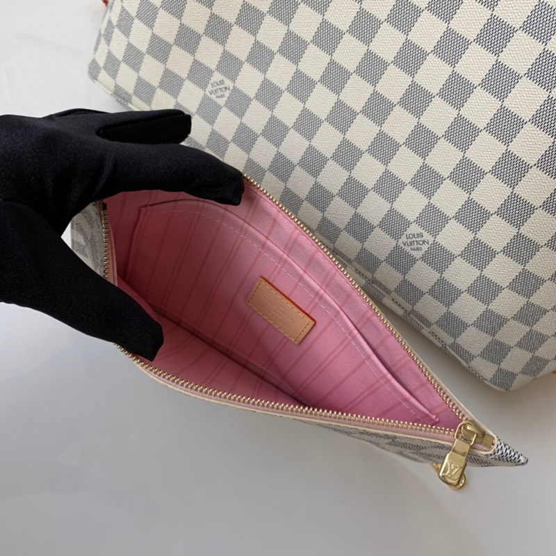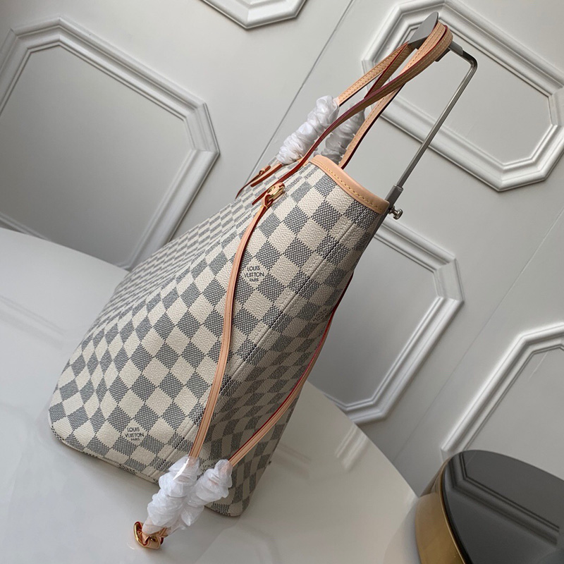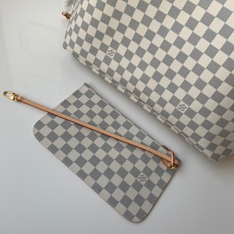 • N41604 LV Neverfull 大号手袋 Damier Azur 白格帆布女包 LV购物袋