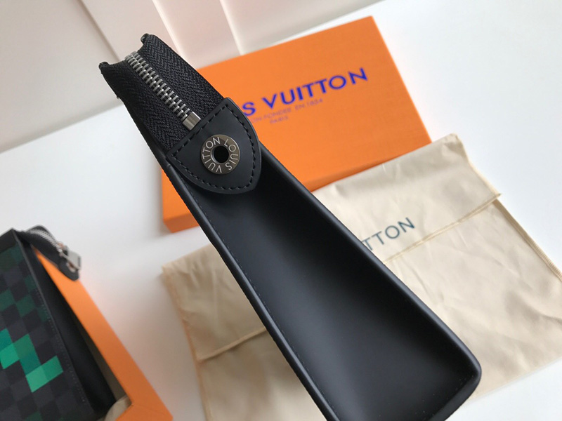 N60174 LV POCHETTE VOYAGE 中号手袋 像素格纹帆布手包 LV手拿包 蓝色