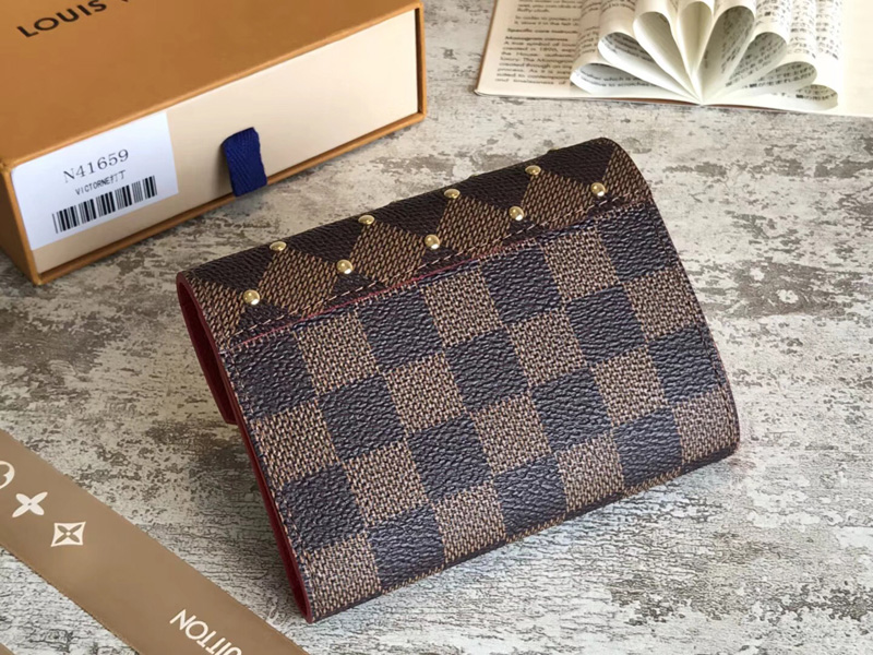 - N61013 LV Victorine 钱夹 LV Damier Ebene帆布柳钉钱夹 LV豆豆三折钱夹
