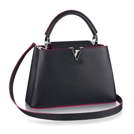 - 结构:- 1个扁平内袋- 两个可脱卸部件:有皮质拉链的拉链式口袋和有8个信用卡槽的平盖袋- 可脱卸式闪亮的金色链条- 按钮开合- 小牛皮饰边- 织物内衬- 闪亮的金色金属配件