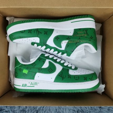 LOUIS VUITTON * NIKE AIR FORCE 1 由 Virgil Abloh 为 Louis Vuitton 设计,灵感来自经典篮球运动鞋,LV Trainer 运动鞋是鞋履系列的标志。该版本采用 Monogram 牛仔布材质,配有带注入 Monogram 花朵的尼龙搭扣带。上部的精心构造。路易威登工匠花了 7 个小时缝制。