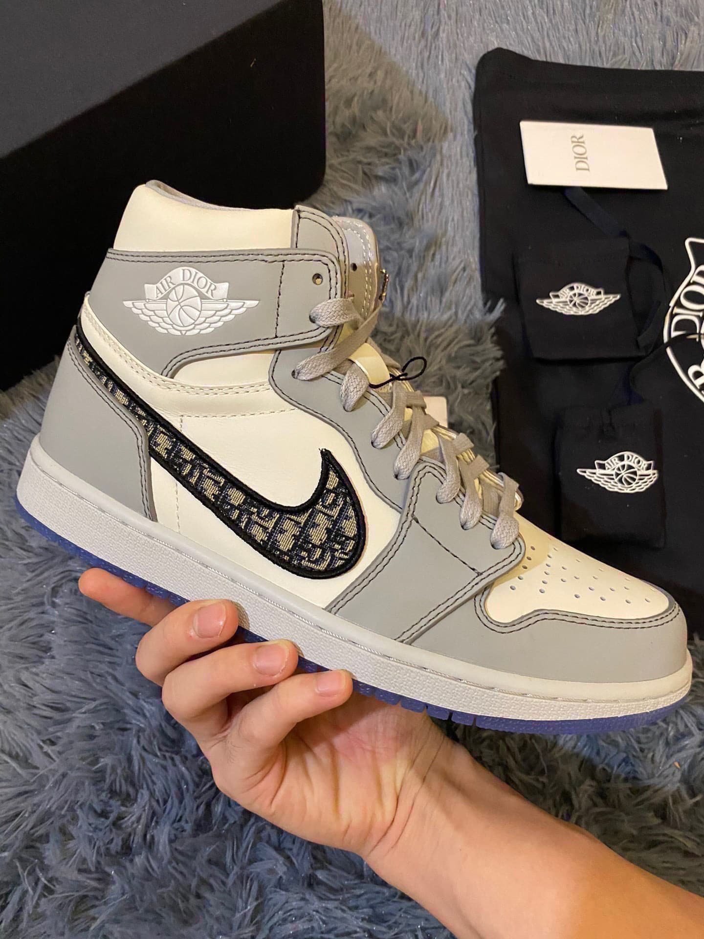 Nike Dior * Air Jordan 1 High OG 狼灰/帆/光子尘/白色女式,女鞋
