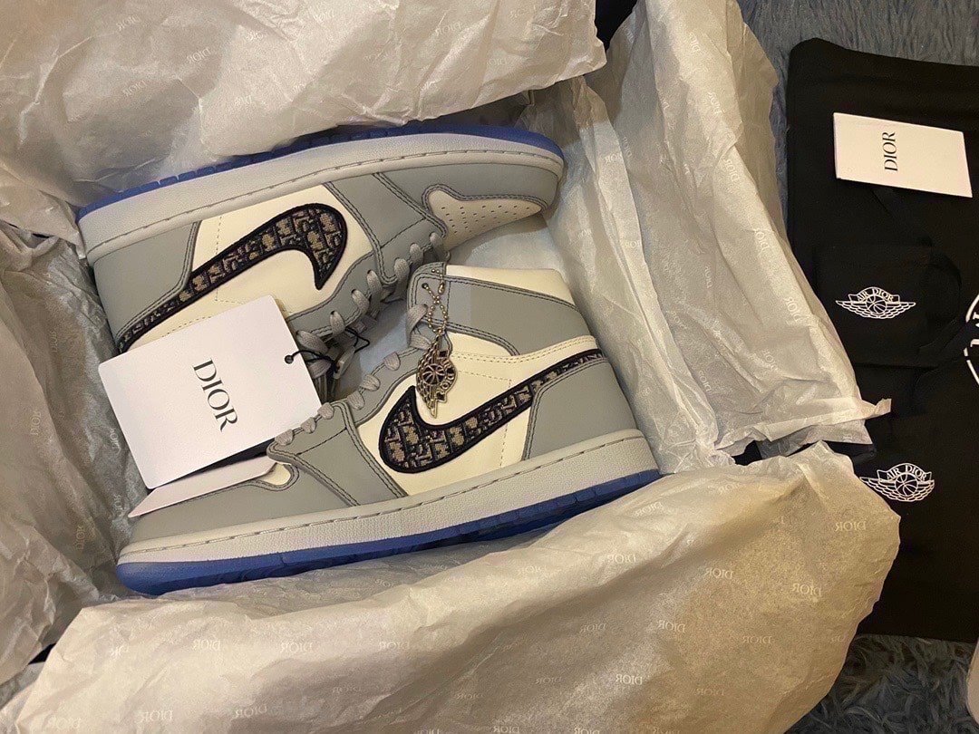 Nike Dior x Air Jordan 1 High OG Wolf Grey/Sail/Photon Dust/White 女士,女鞋