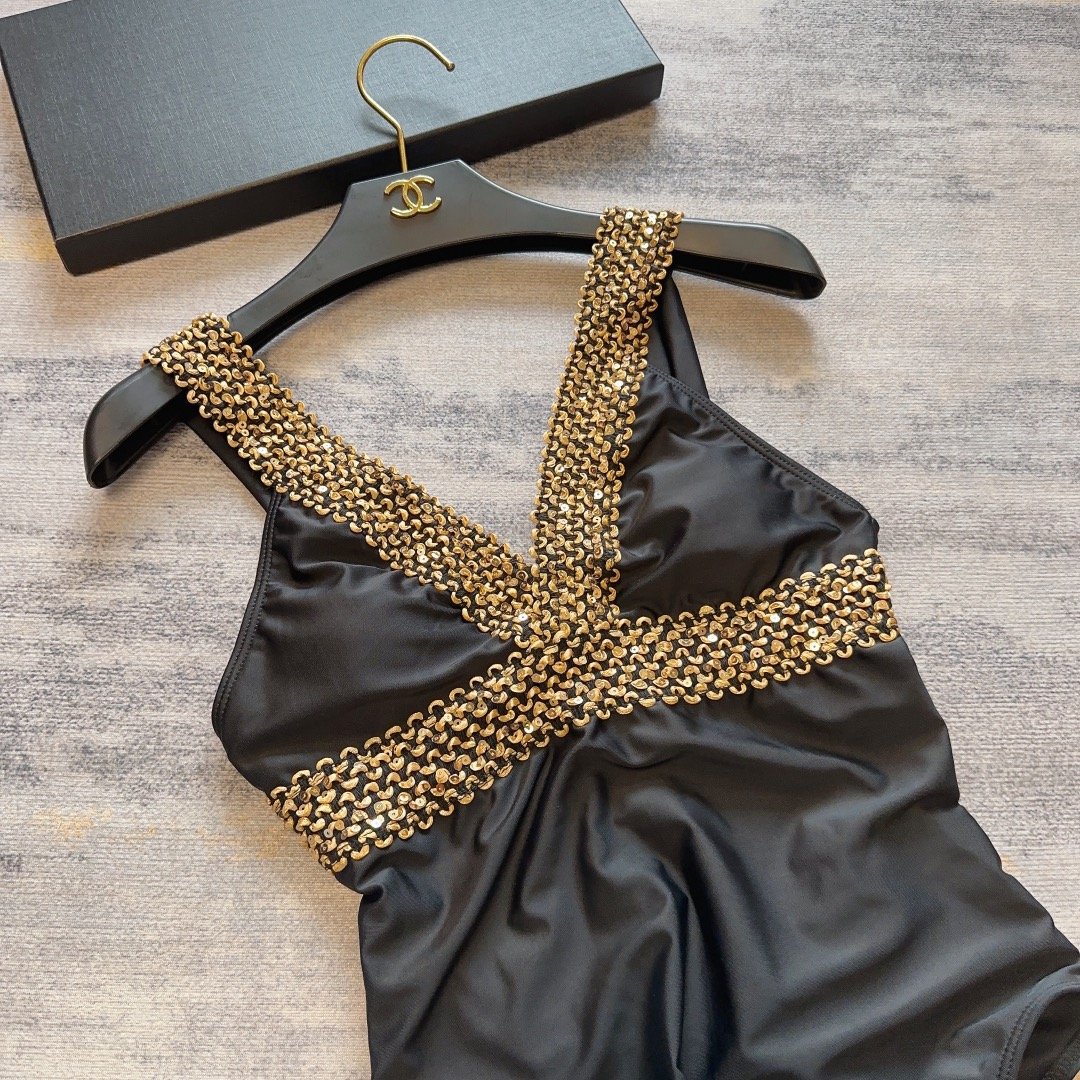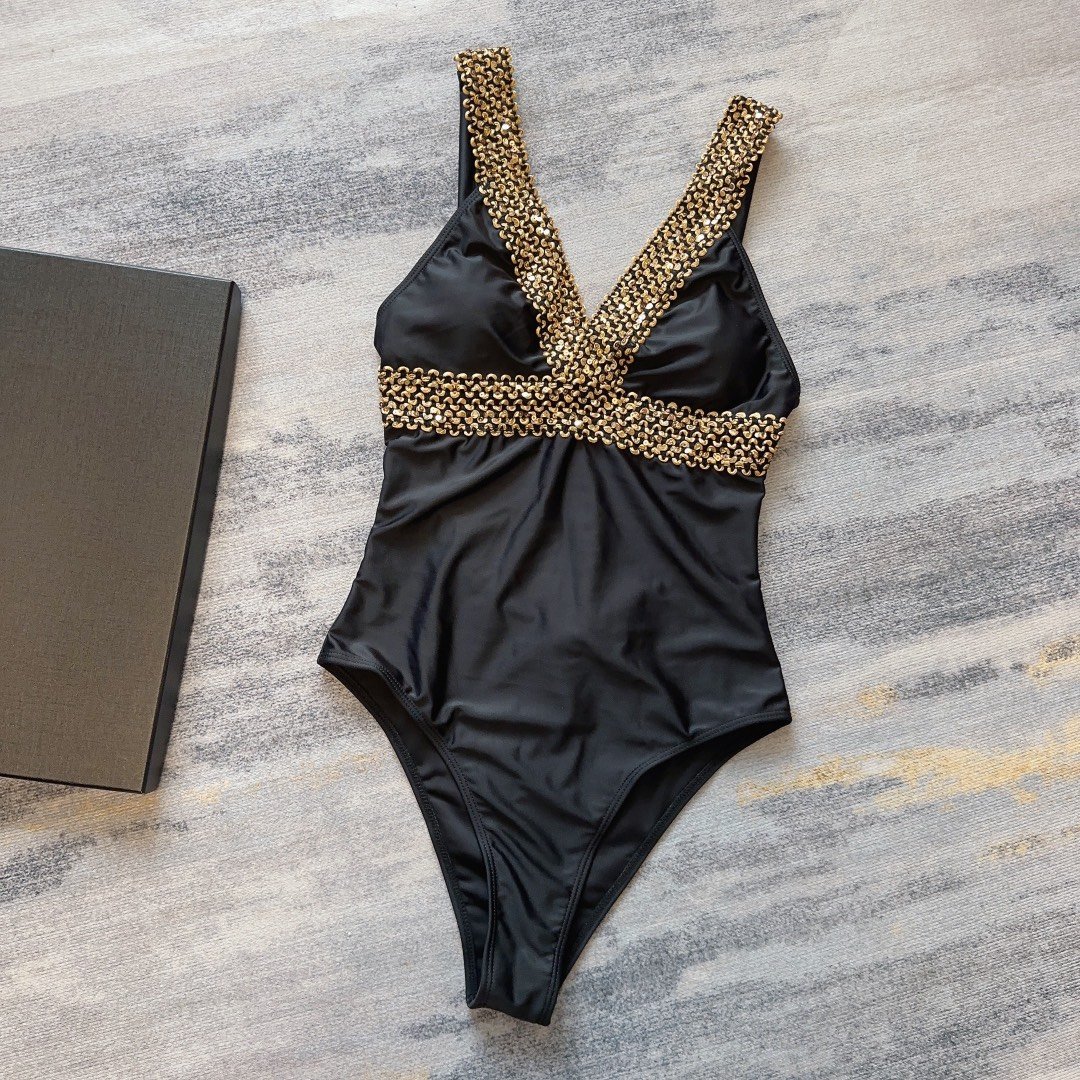 女式 V 领连体泳衣 黑色
